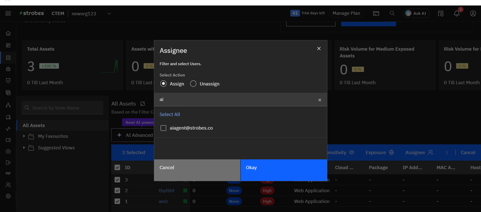 - Select the users and click on 'Okay', depending on the action you have selected users will either be assigned or unassigned.