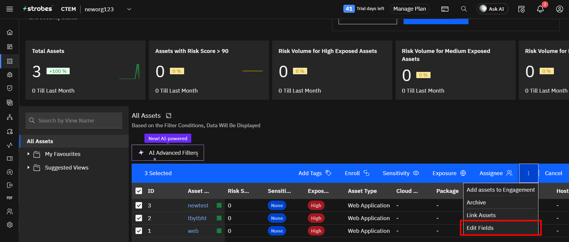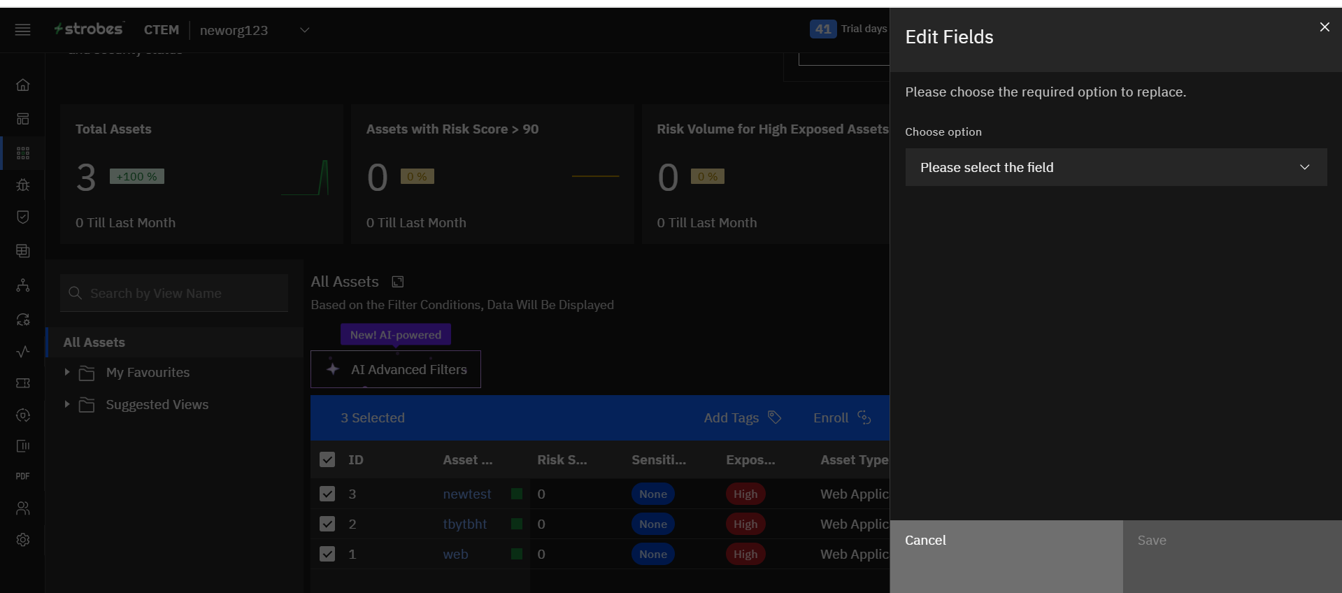 - Select the assets for which you need to bulk edit the value of a custom field.