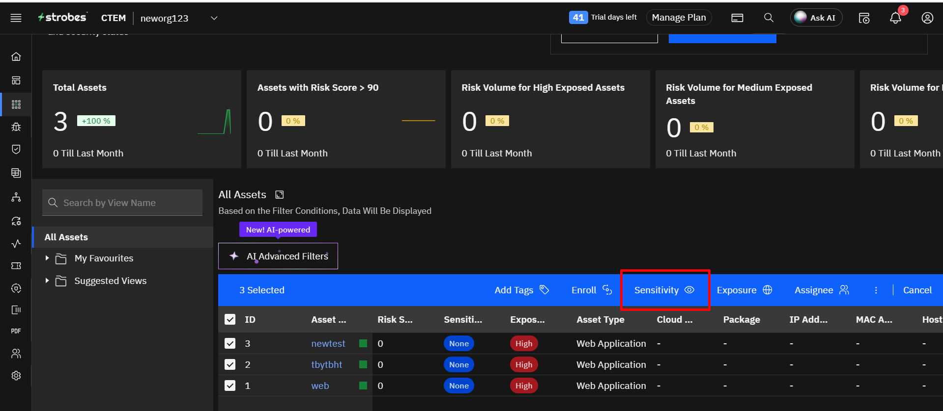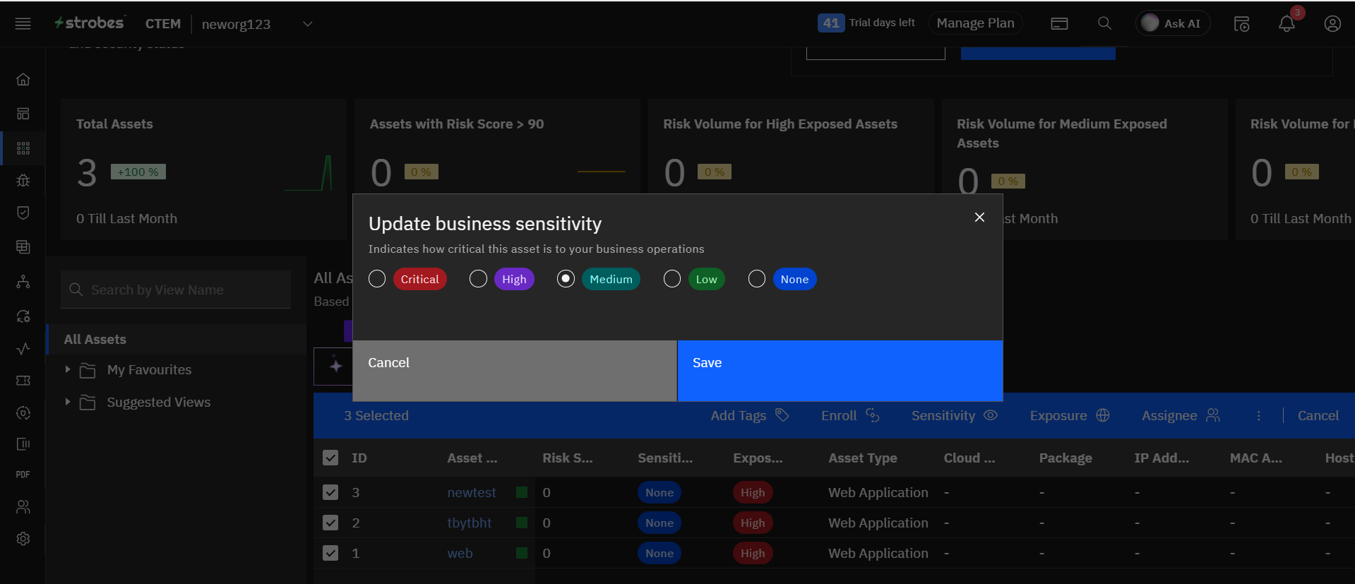 If you need to update the business sensitivity of multiple assets at once, you can use this option.