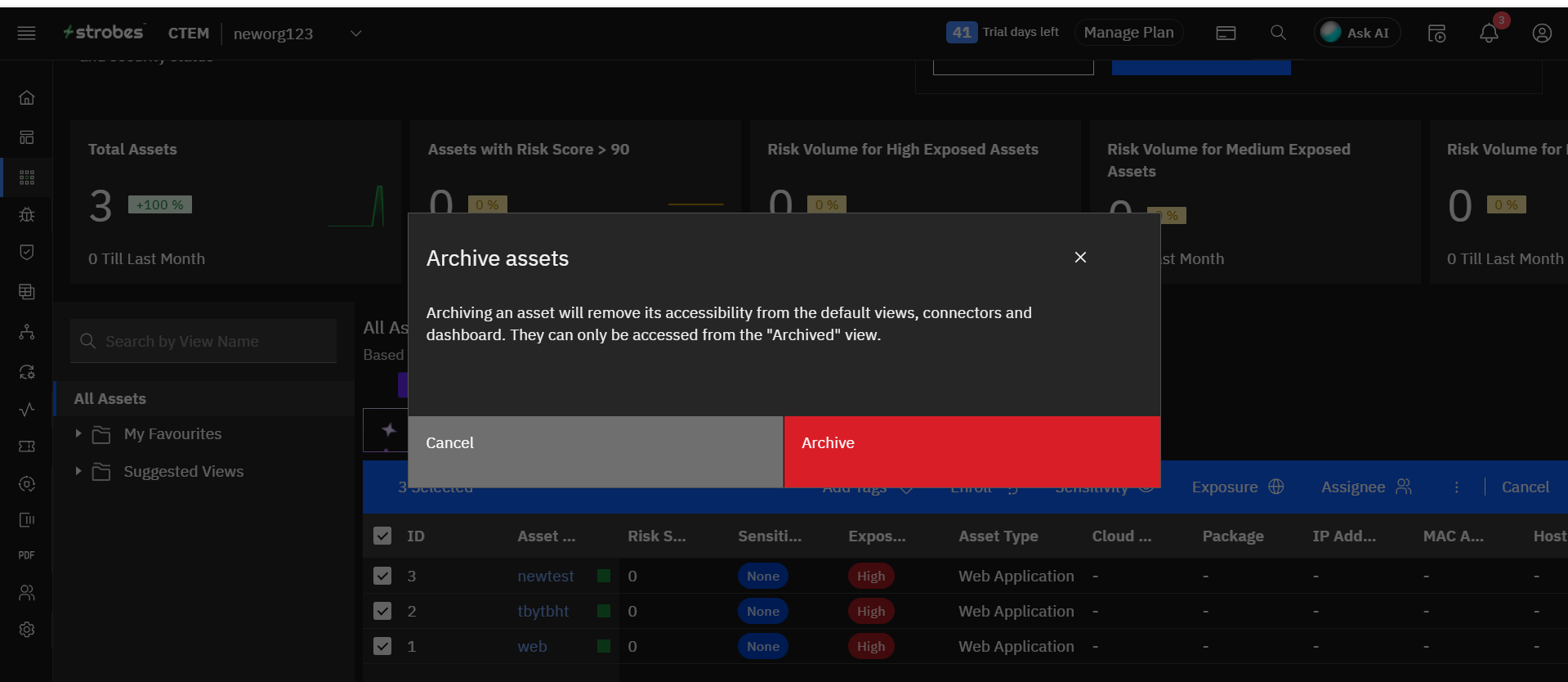 - You will be presented with a confirmation pop up. If you wish to go ahead and archive the assets, click on 'Archive'.