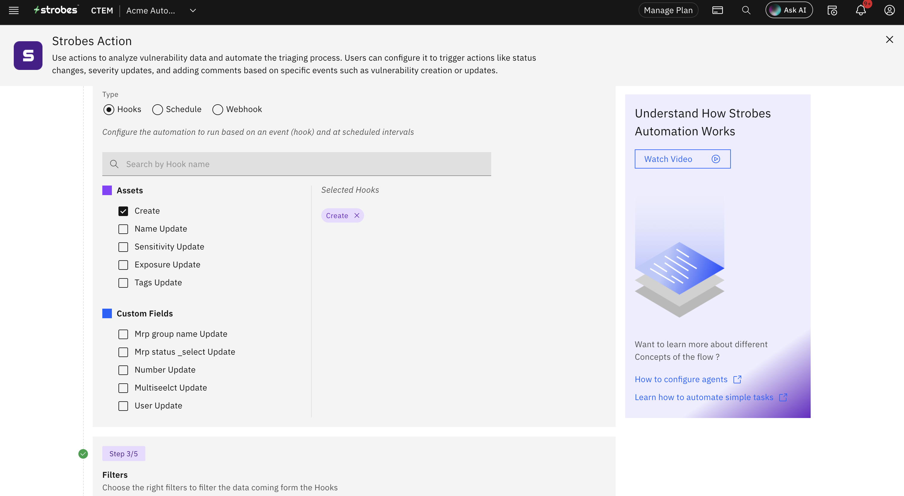 Configuring Actions in Strobes Automation