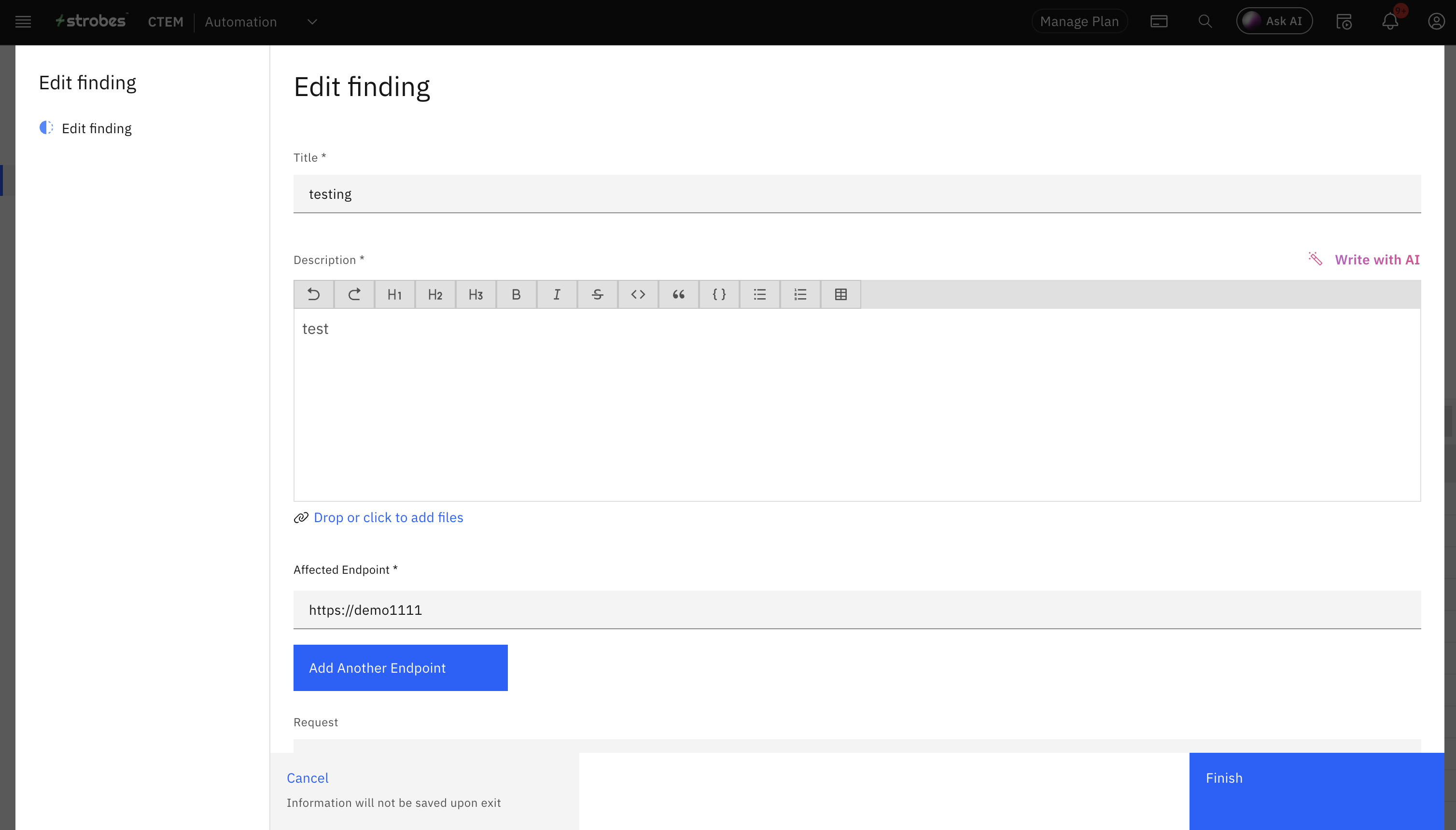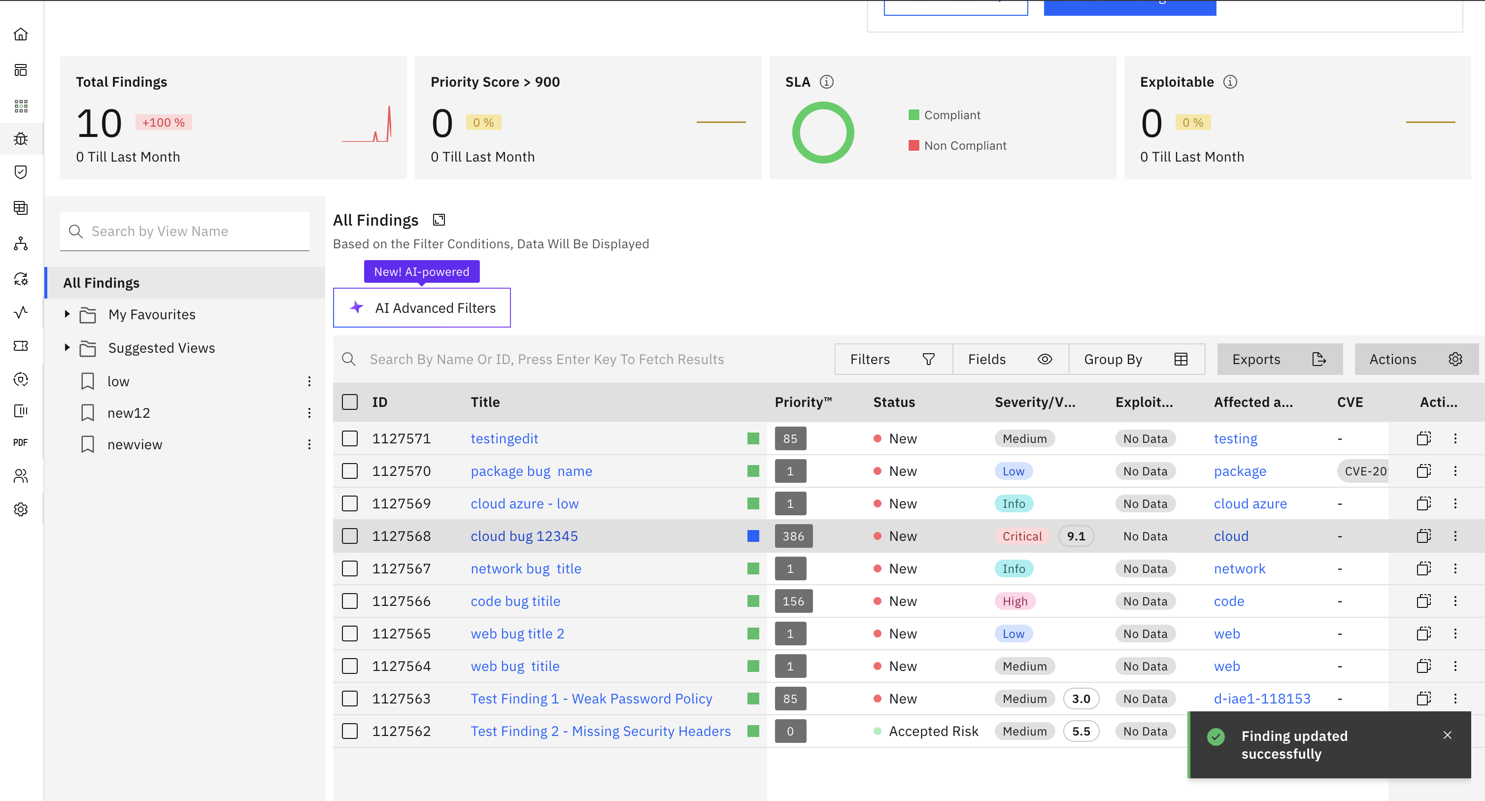 Tip: You can update fields like severity, description, remediation steps, asset mapping, and more depending on your permissions.