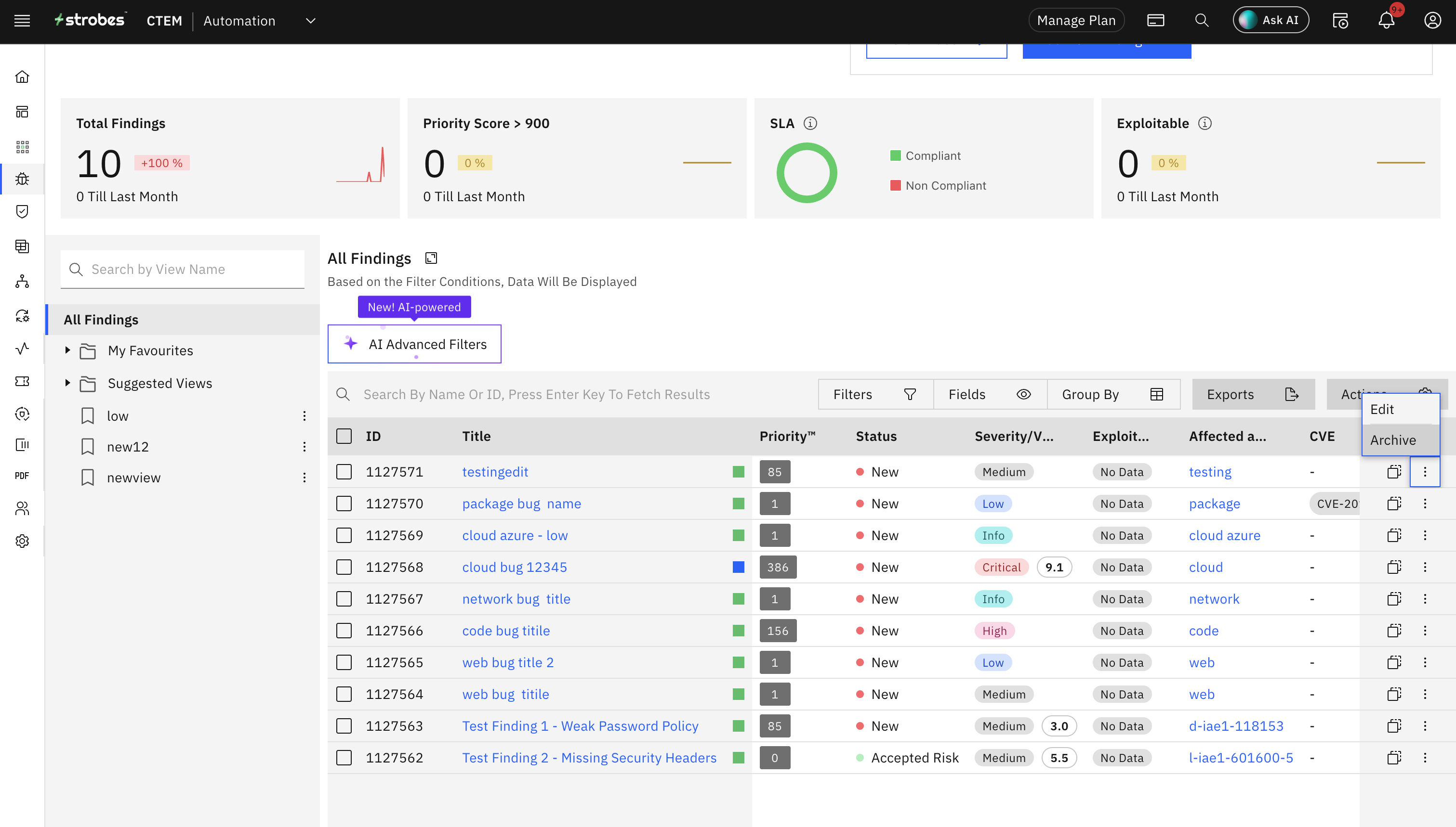 You can easily modify or archive vulnerability records in Strobes based on your current assessment needs. Follow the steps below to edit details or archive unnecessary vulnerabilities.