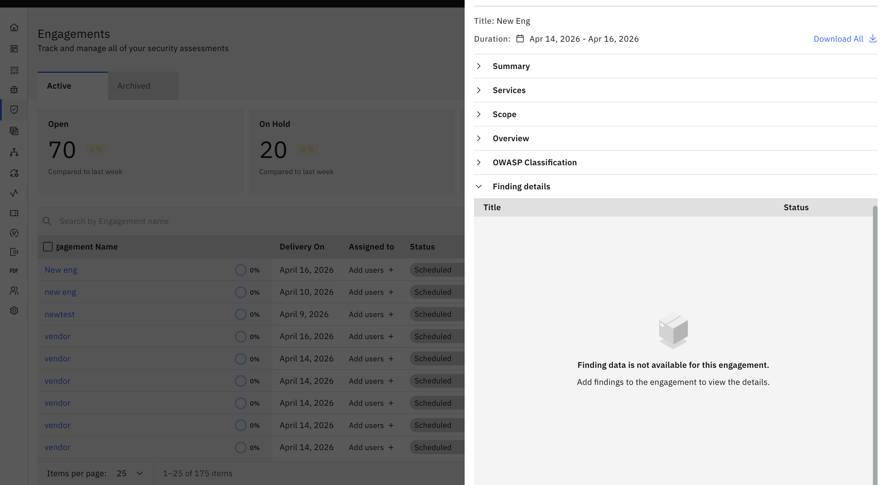 - Vulnerability Details - This sections displays the list of all the vulnerabilities reported in an engagement.