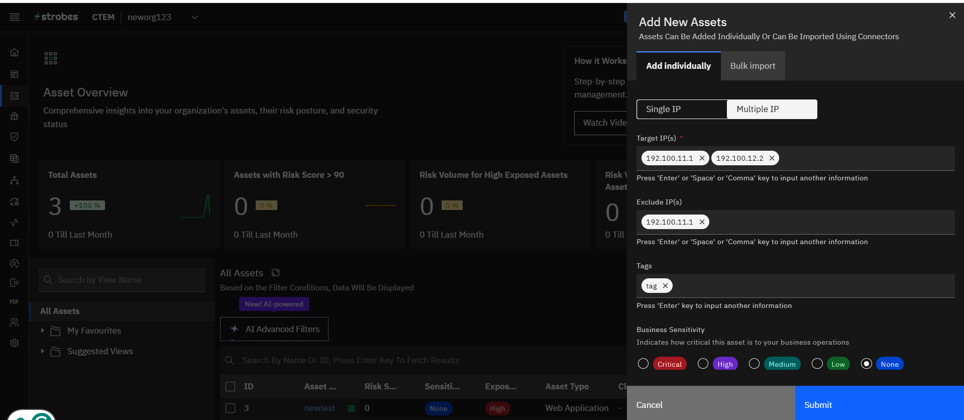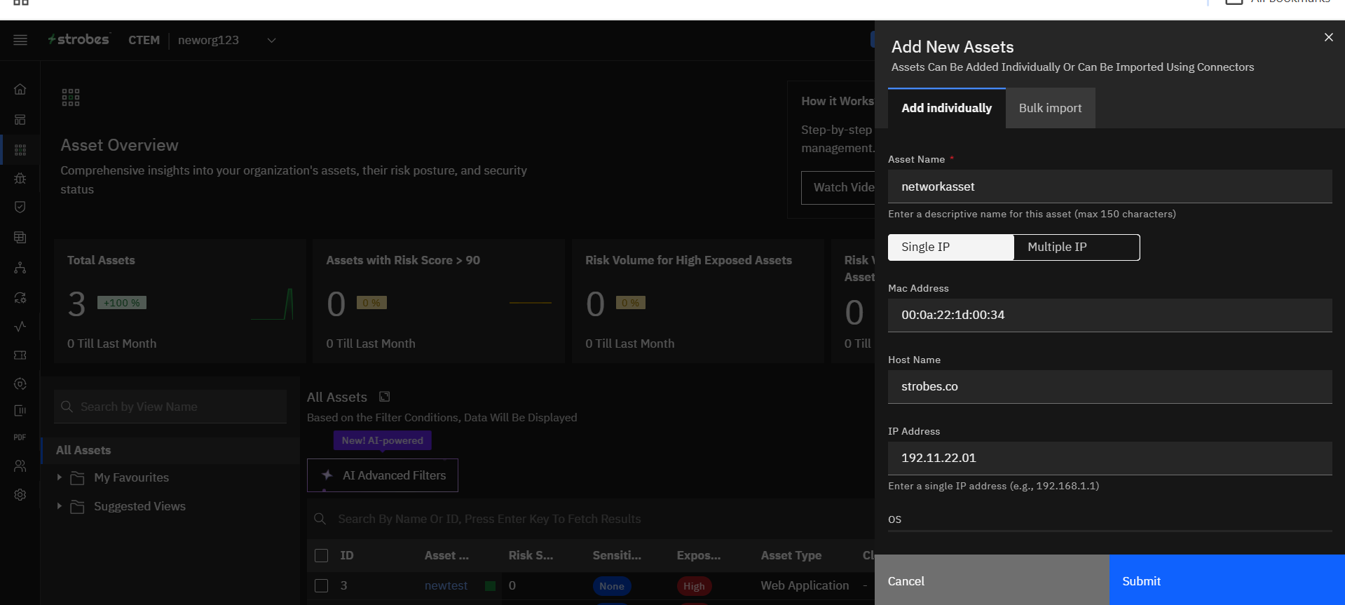- IP address - Provide a valid IP address for the asset which you need to add.