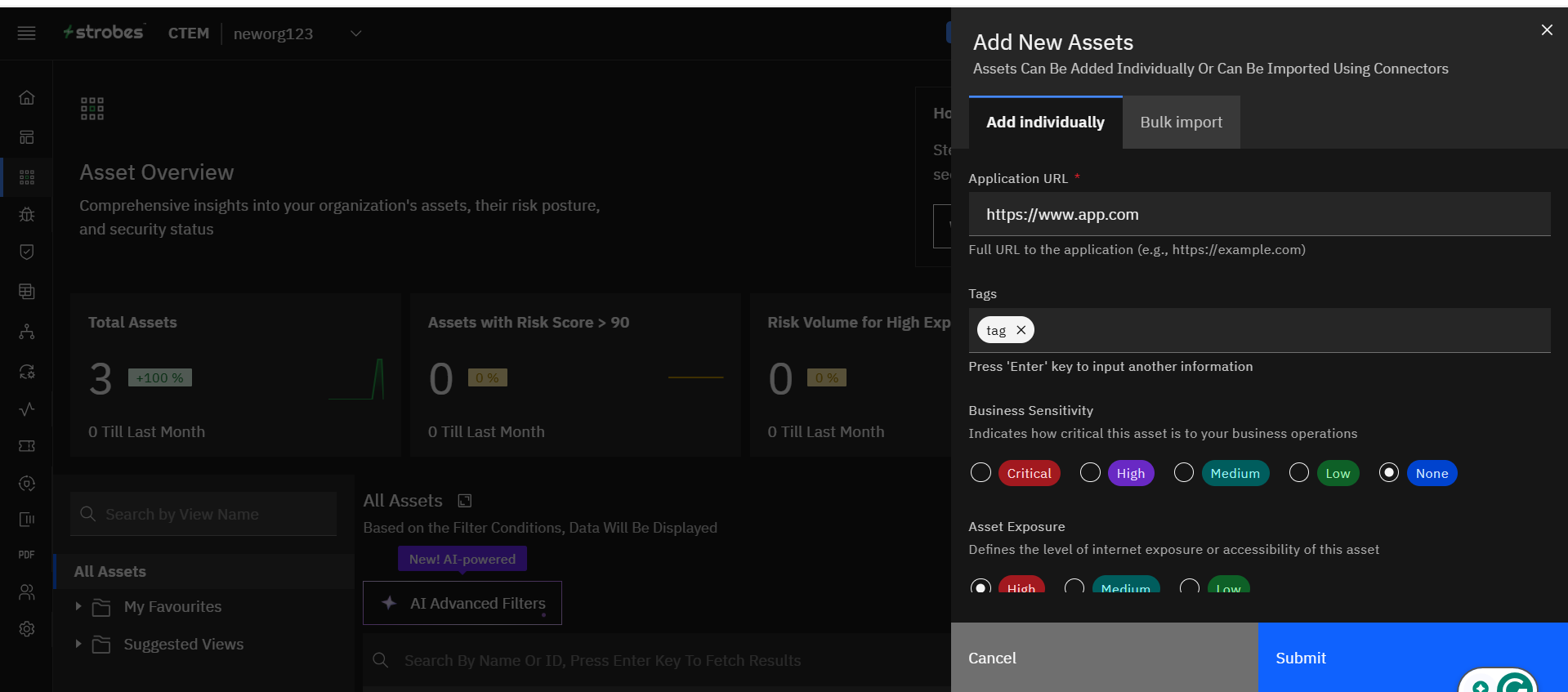 - Asset Exposure - Provide the exposure of the asset over the internet. You will be provided with two options and you can only choose one. The following are the options: