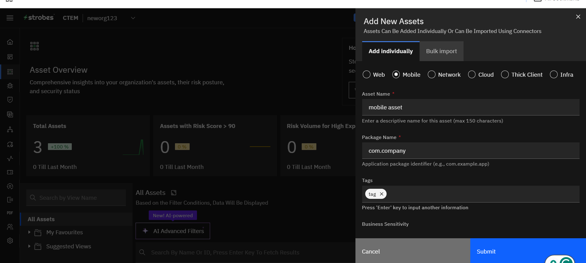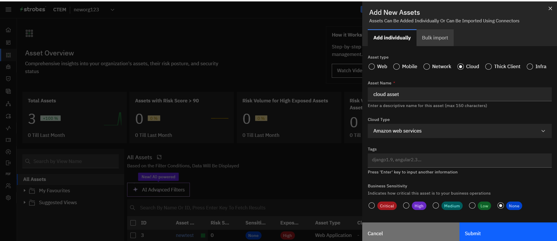 Once you have provided the relevant information, click on 'Submit' and the assets will be created.