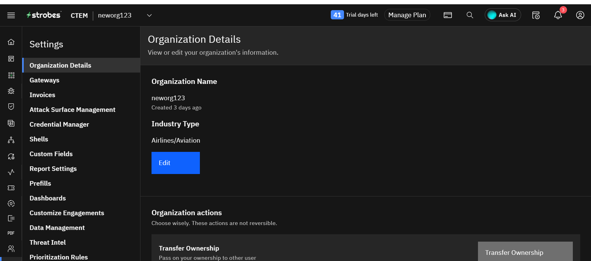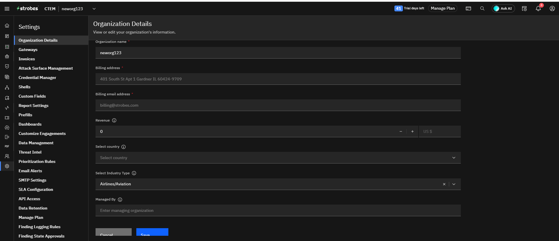 The Organization Details section lets you view and manage essential information about your organization, such as its name, industry, and billing information.