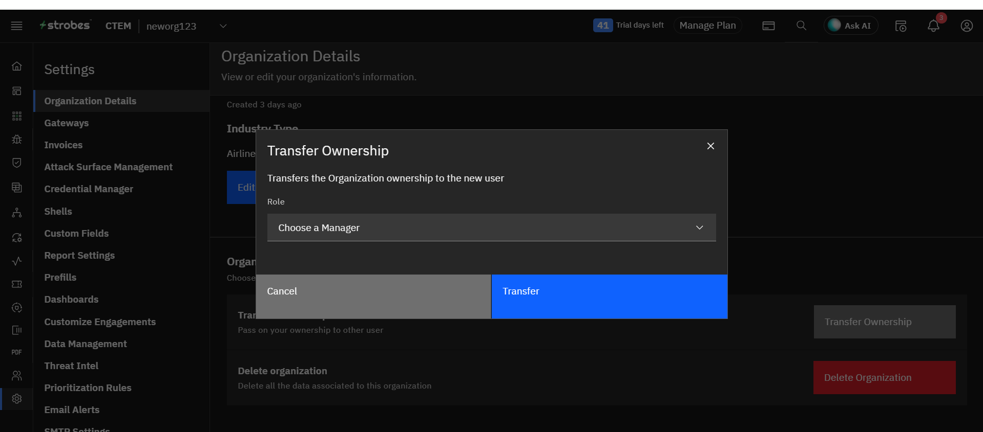 - Click Transfer Ownership.