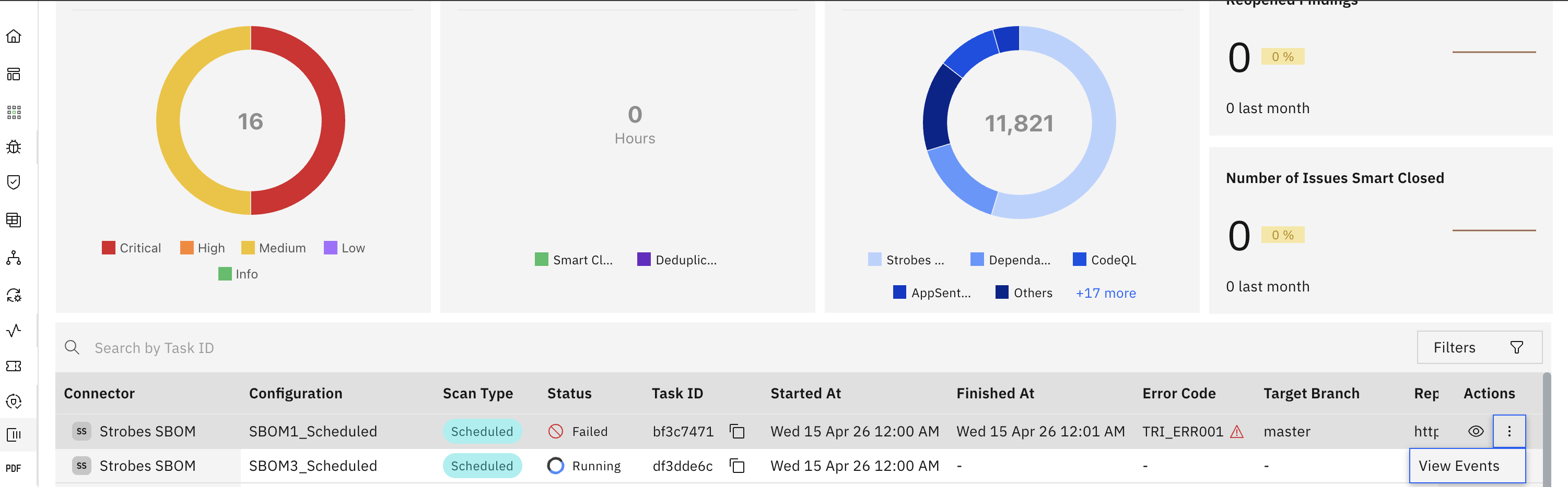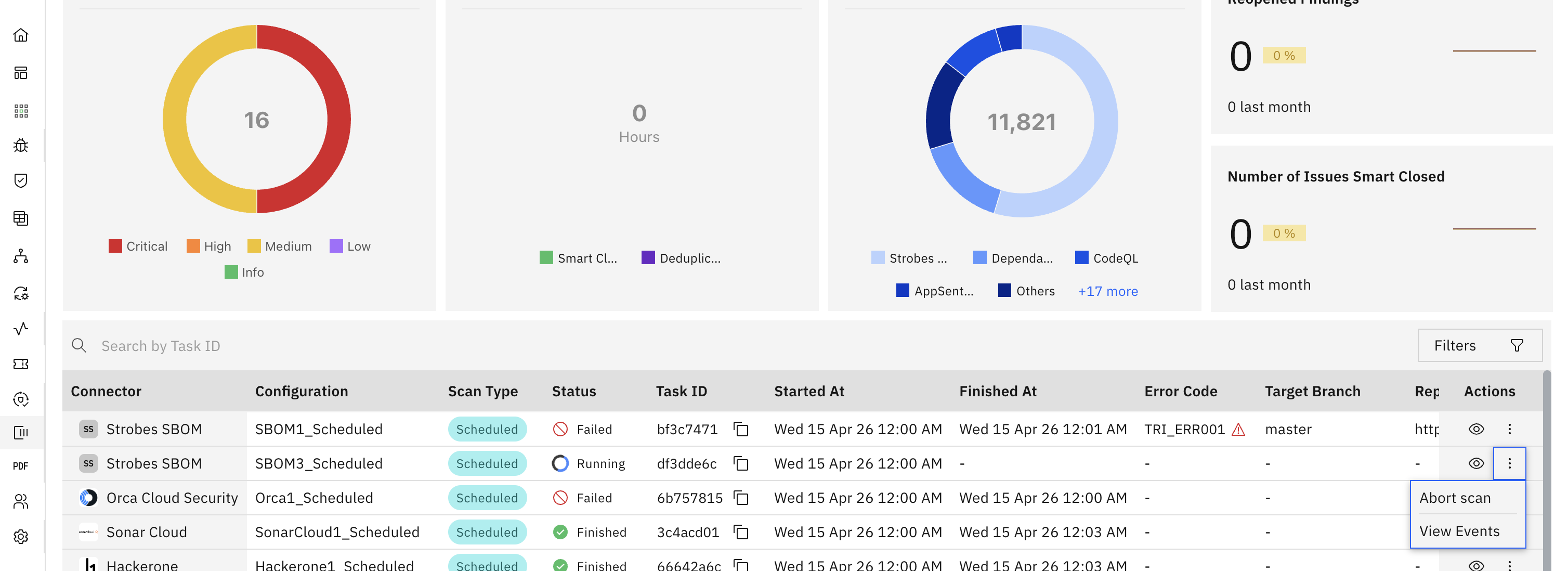 - For a task whose state is in "In-progress", you can access the raw logs of the task, as well as have an option to abort the scan.