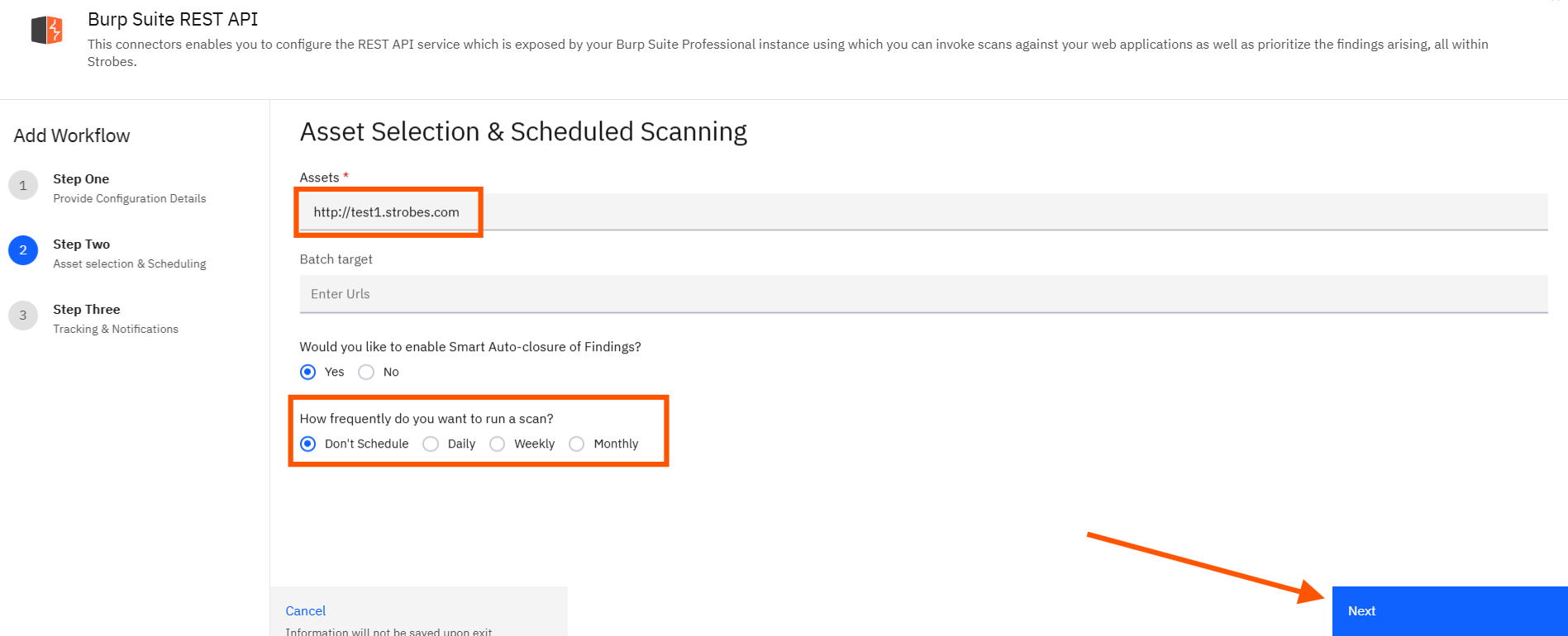 Note: Only the URL entered in this step will be scanned during the run.