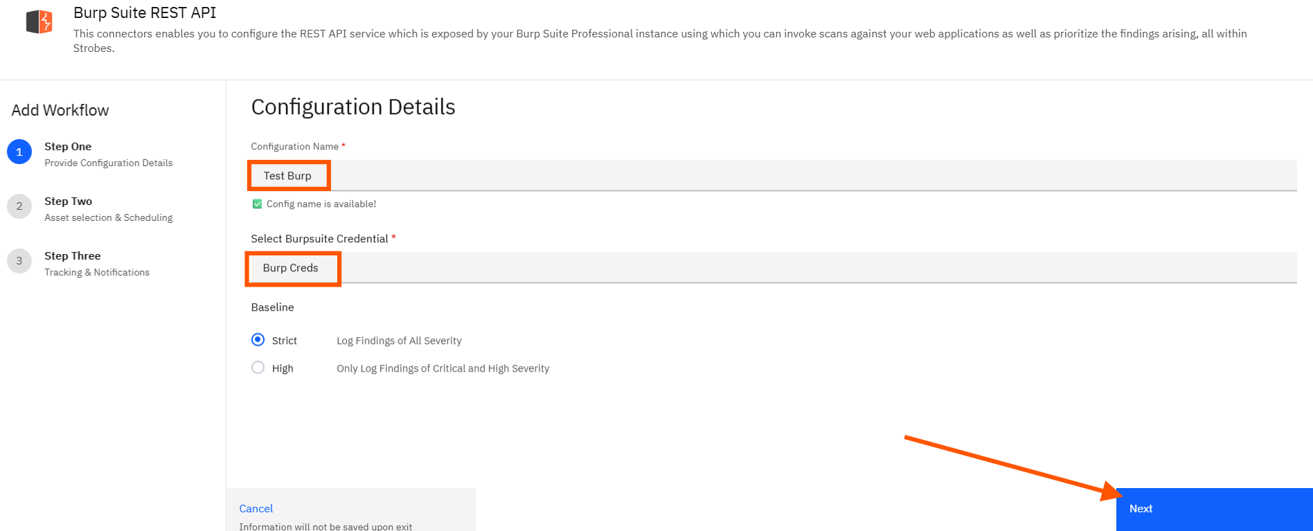 - Burp Suite Credential – Choose from the credentials you’ve already configured.