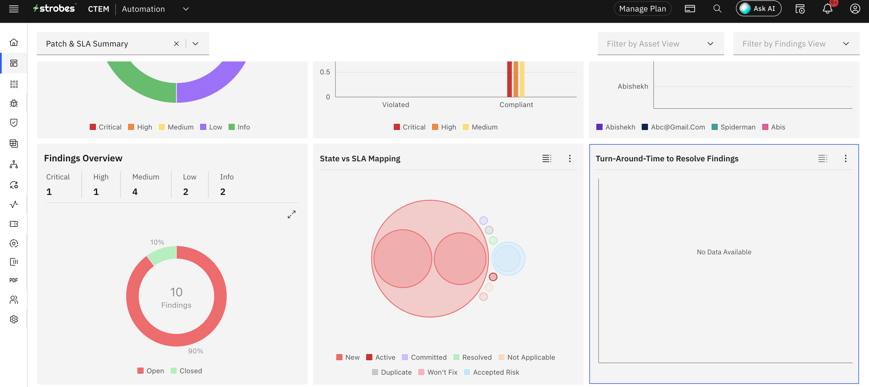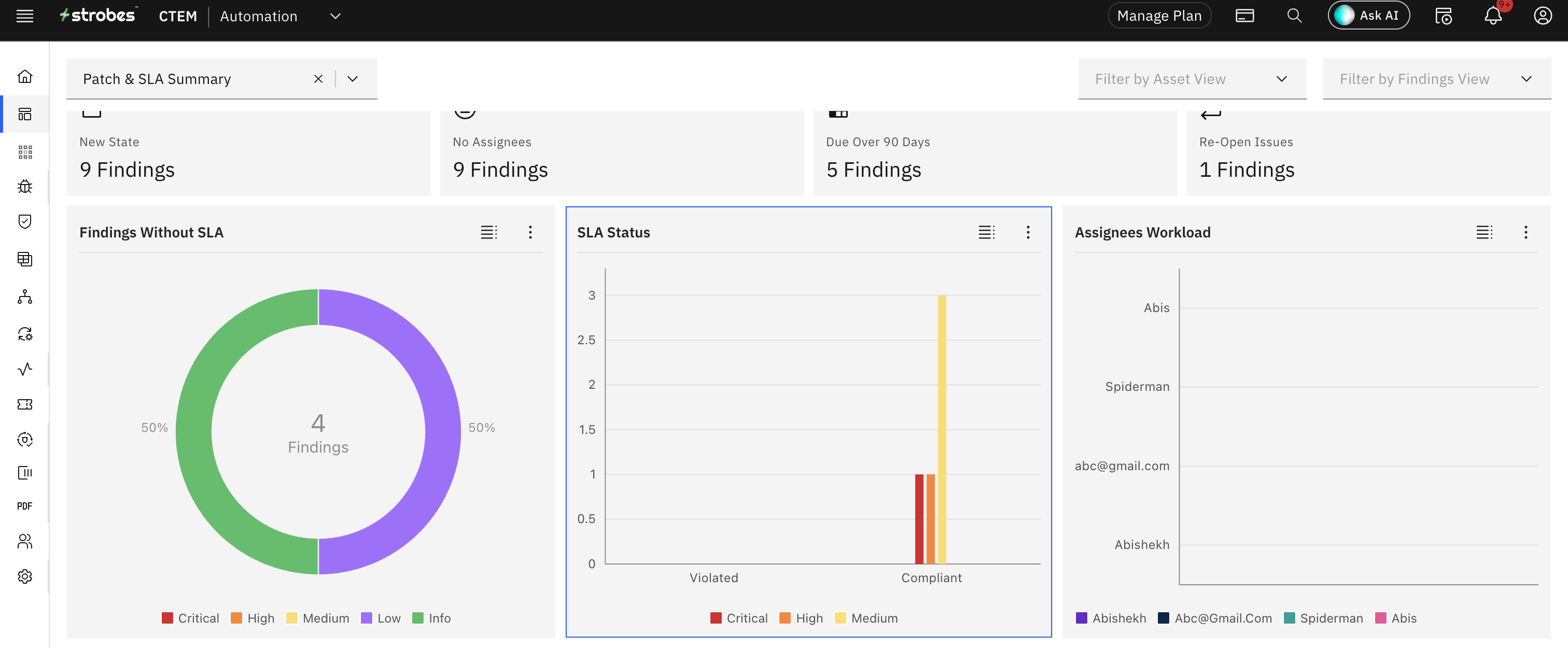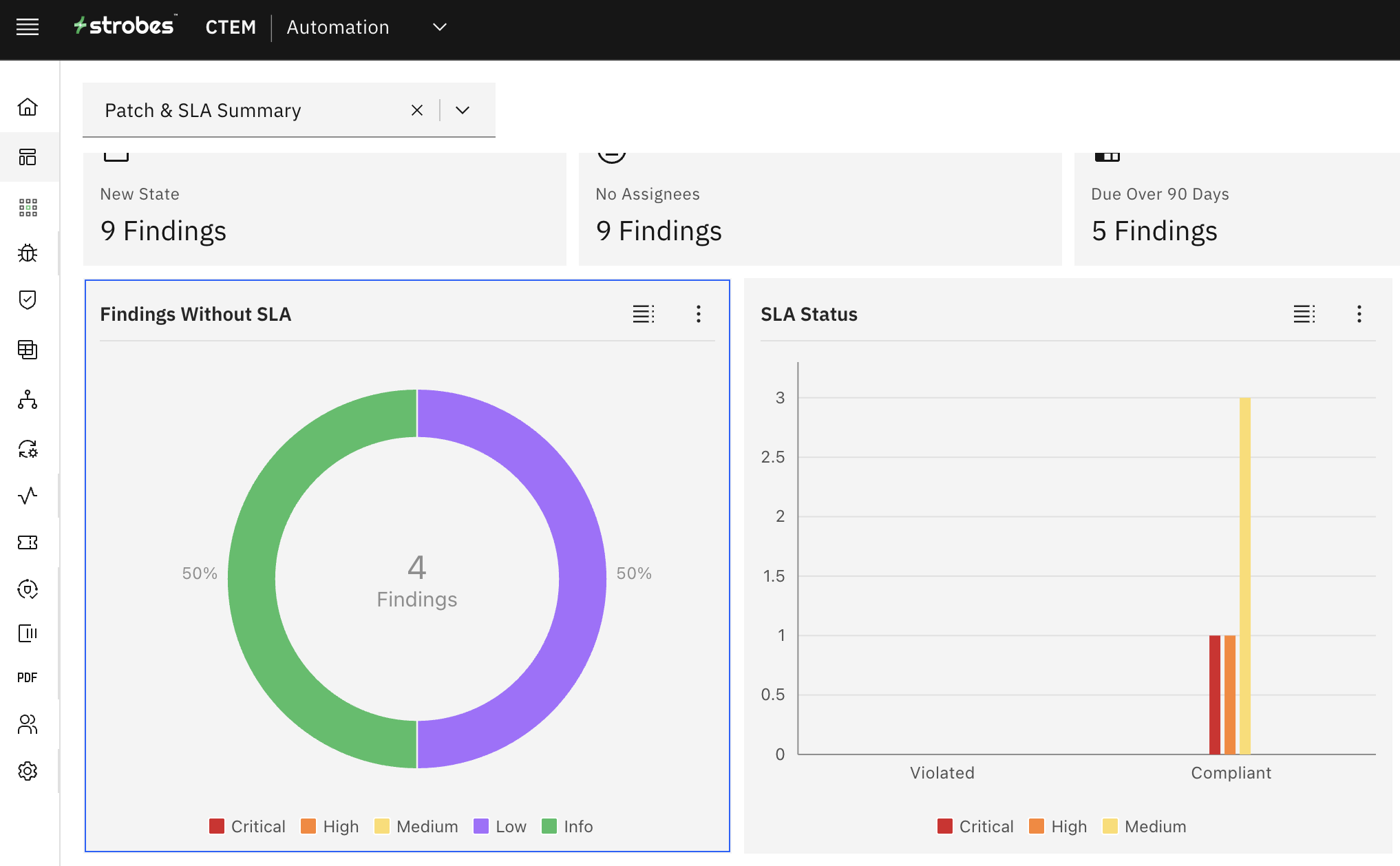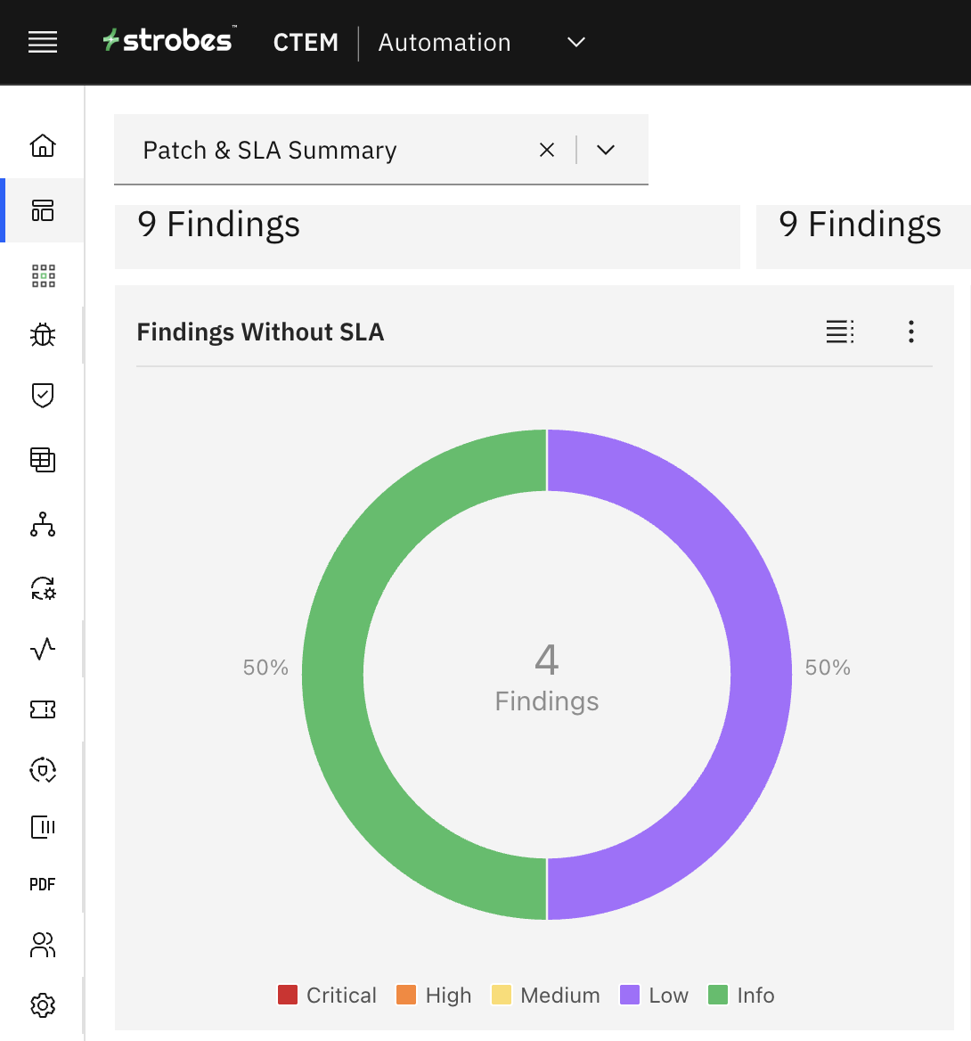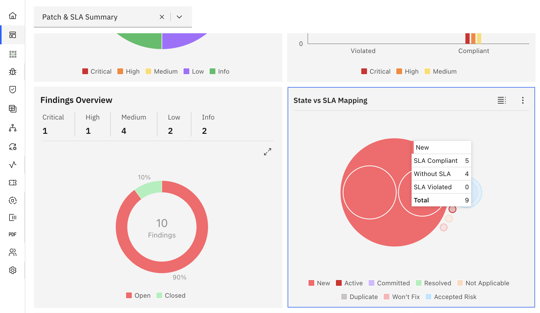 This chart shows you the distribution of vulnerabilities and their SLA status based on severity.