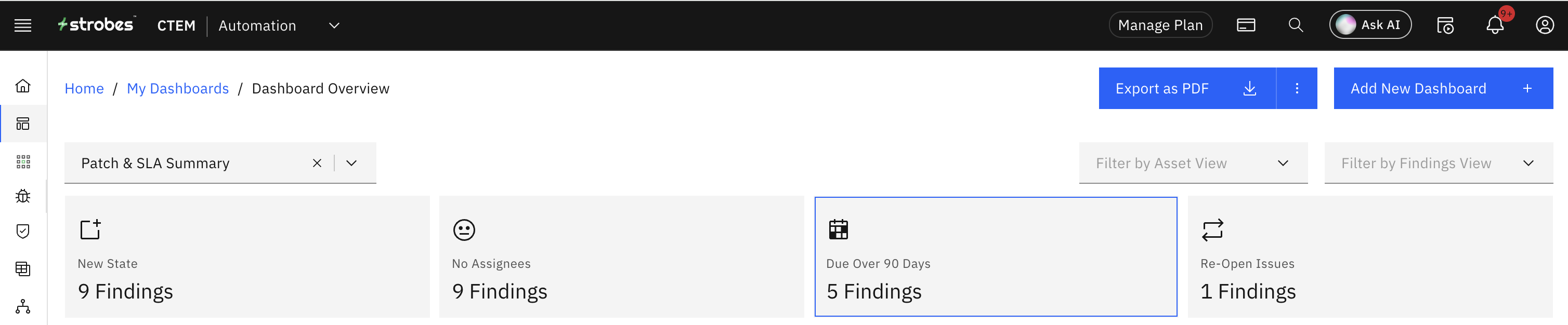 This card highlights the total count of vulnerabilities in New State. Please note that for these vulnerabilities, SLA is not activated.