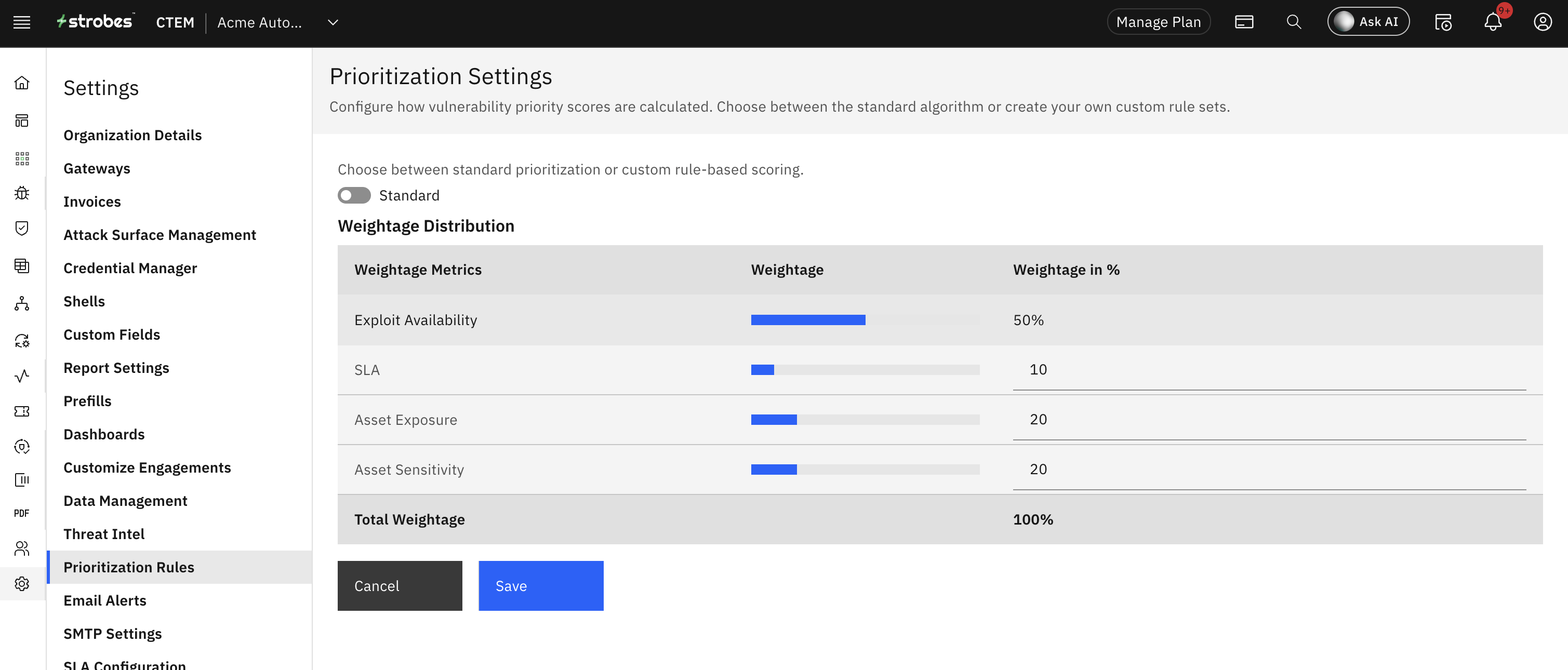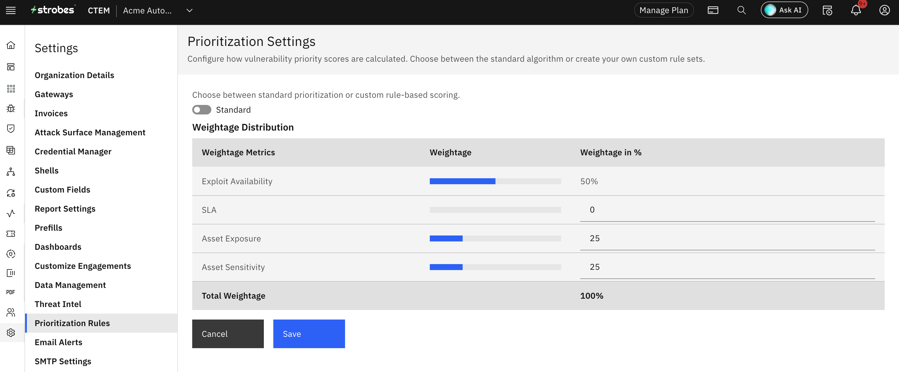 - Click on ’Save’. Your rules will be applied and will now be used to calculate the priority score across all the vulnerabilities in your organization.