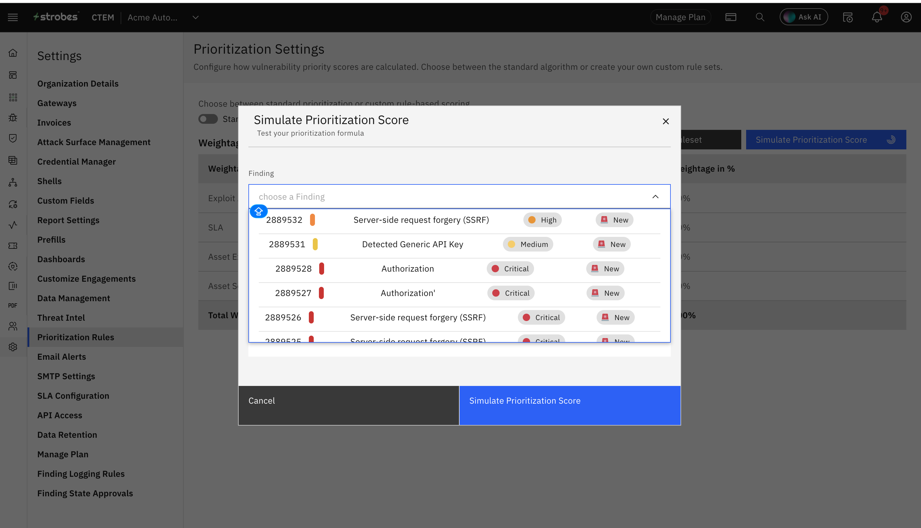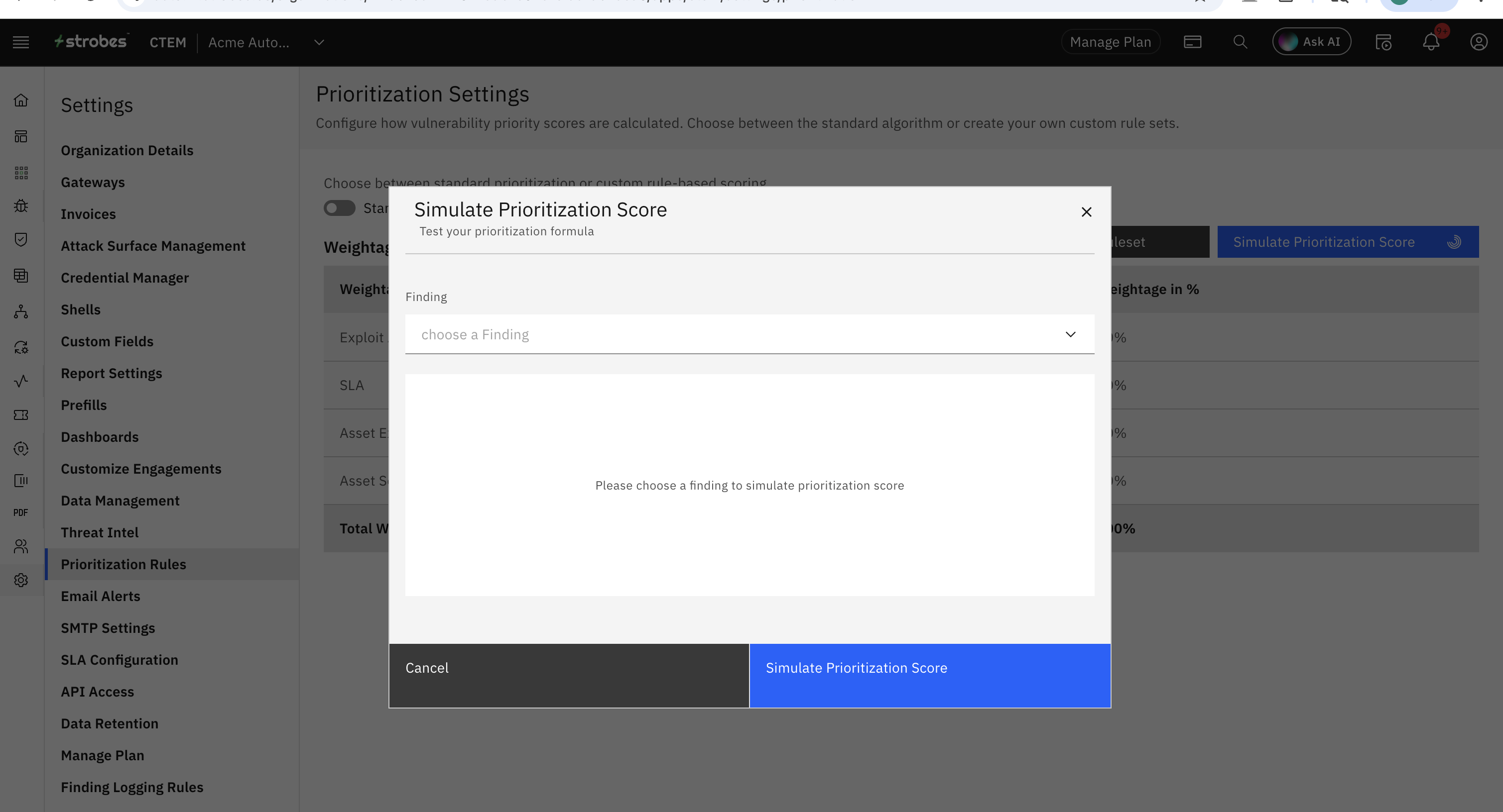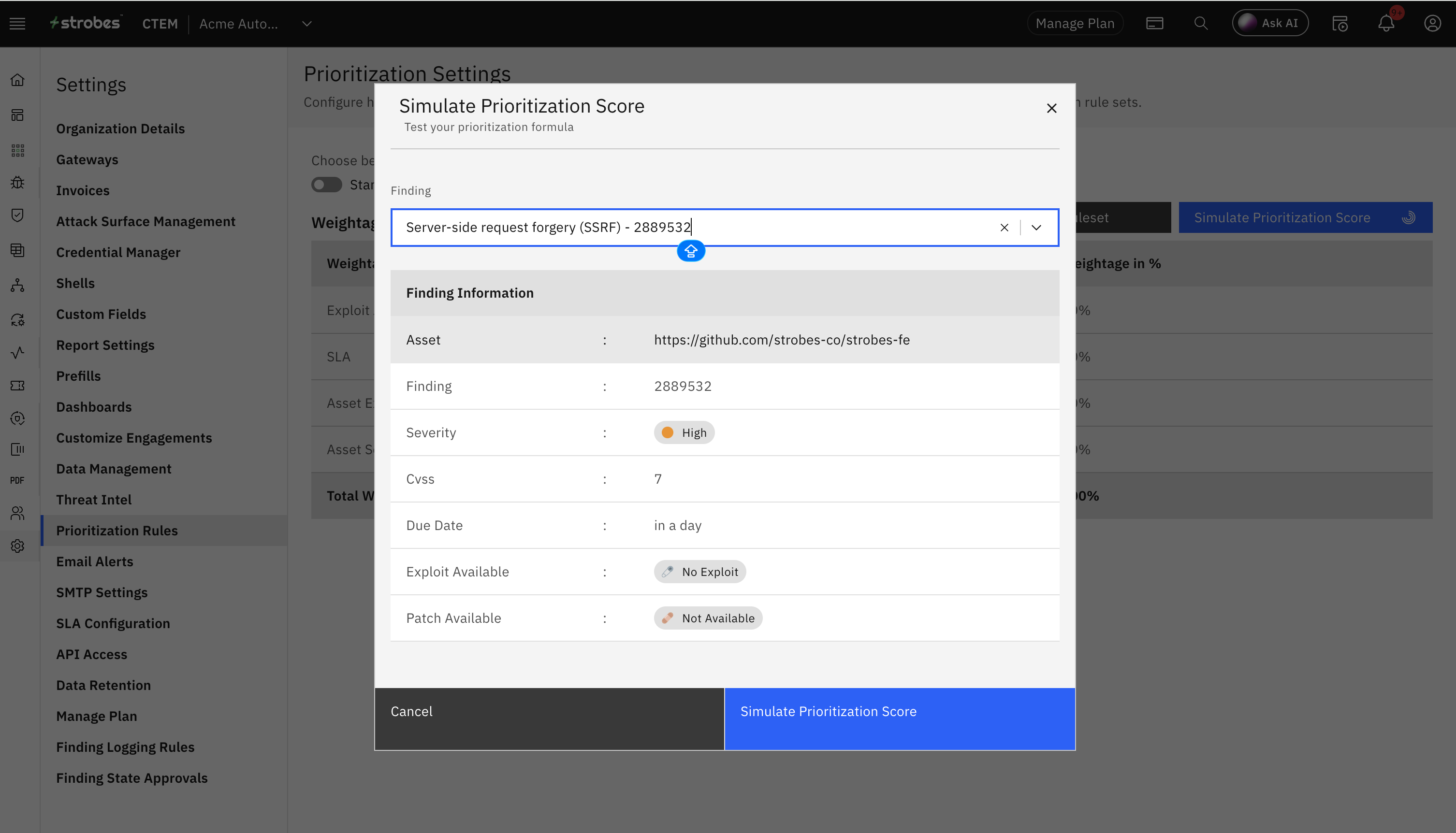 Prioritization Rules are used by Strobes to generate a priority score for a vulnerability which can be used by the IT, Patch management and Development teams to better understand the risk that a vulnerability poses to the organisation and prioritise which vulnerabilities to fix. There are four metrics based on which Strobes calculates the priority score. The metrics are:
