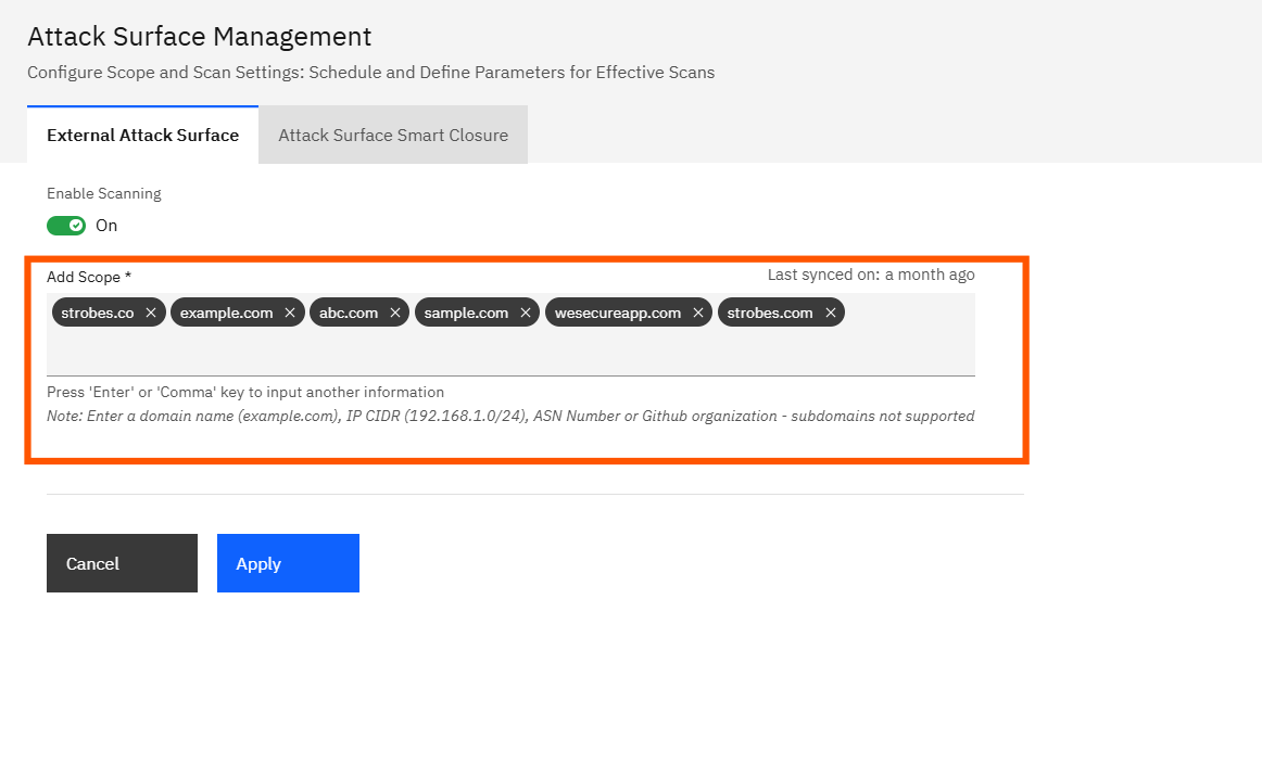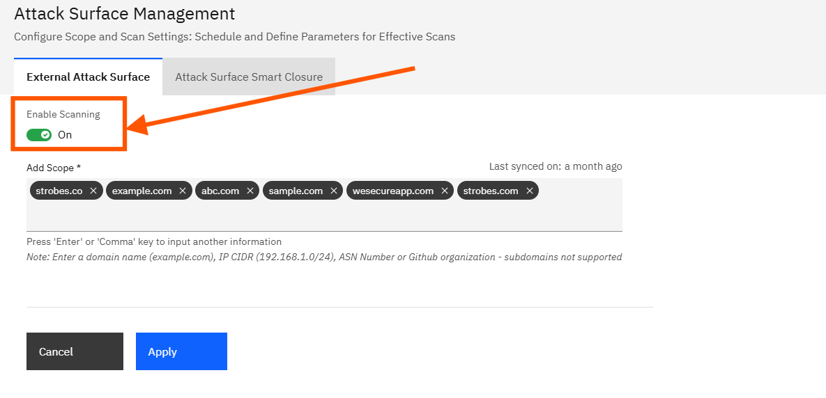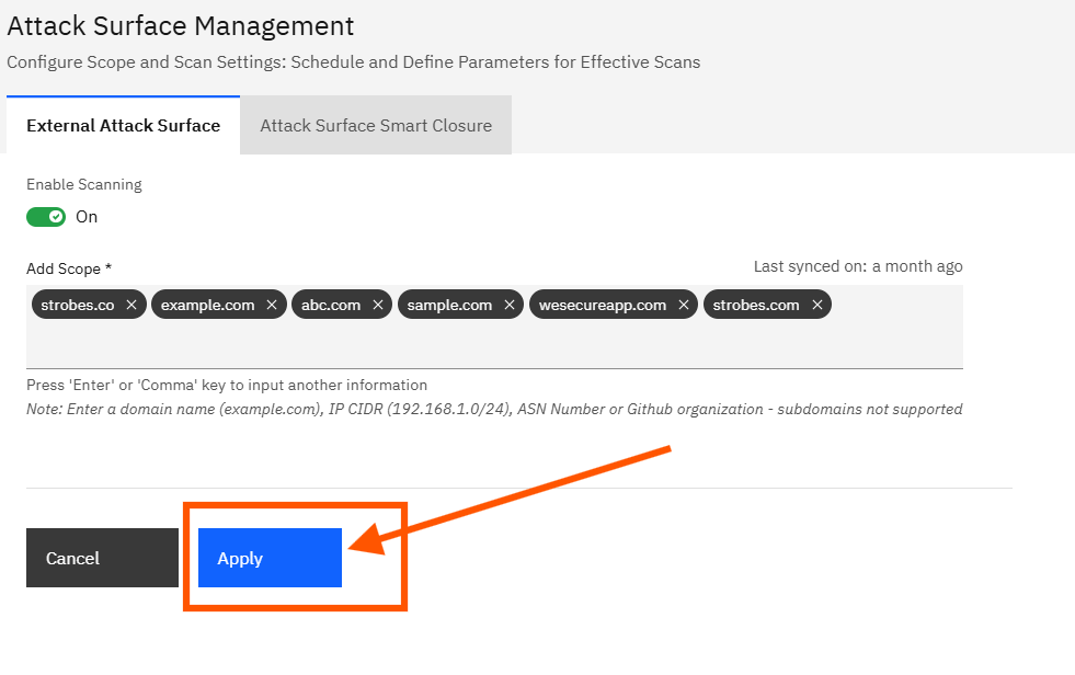 - After enabling the toggle and adding scopes, click “Apply” to save your changes and initiate scanning.
