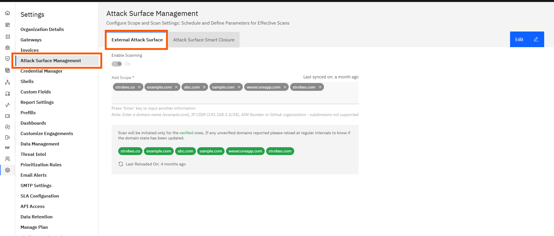 - Go to Settings → Attack Surface Management → External Attack Surface.