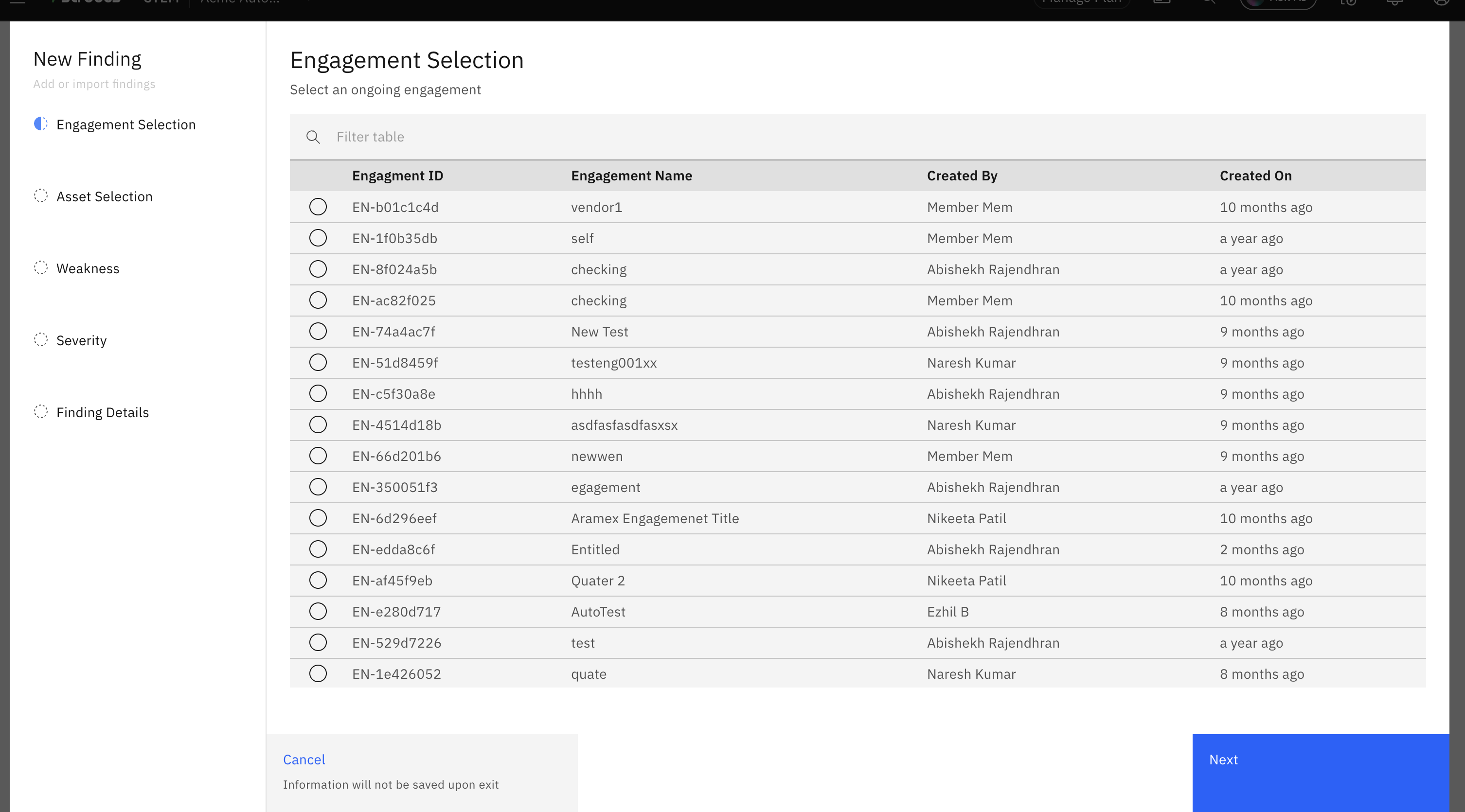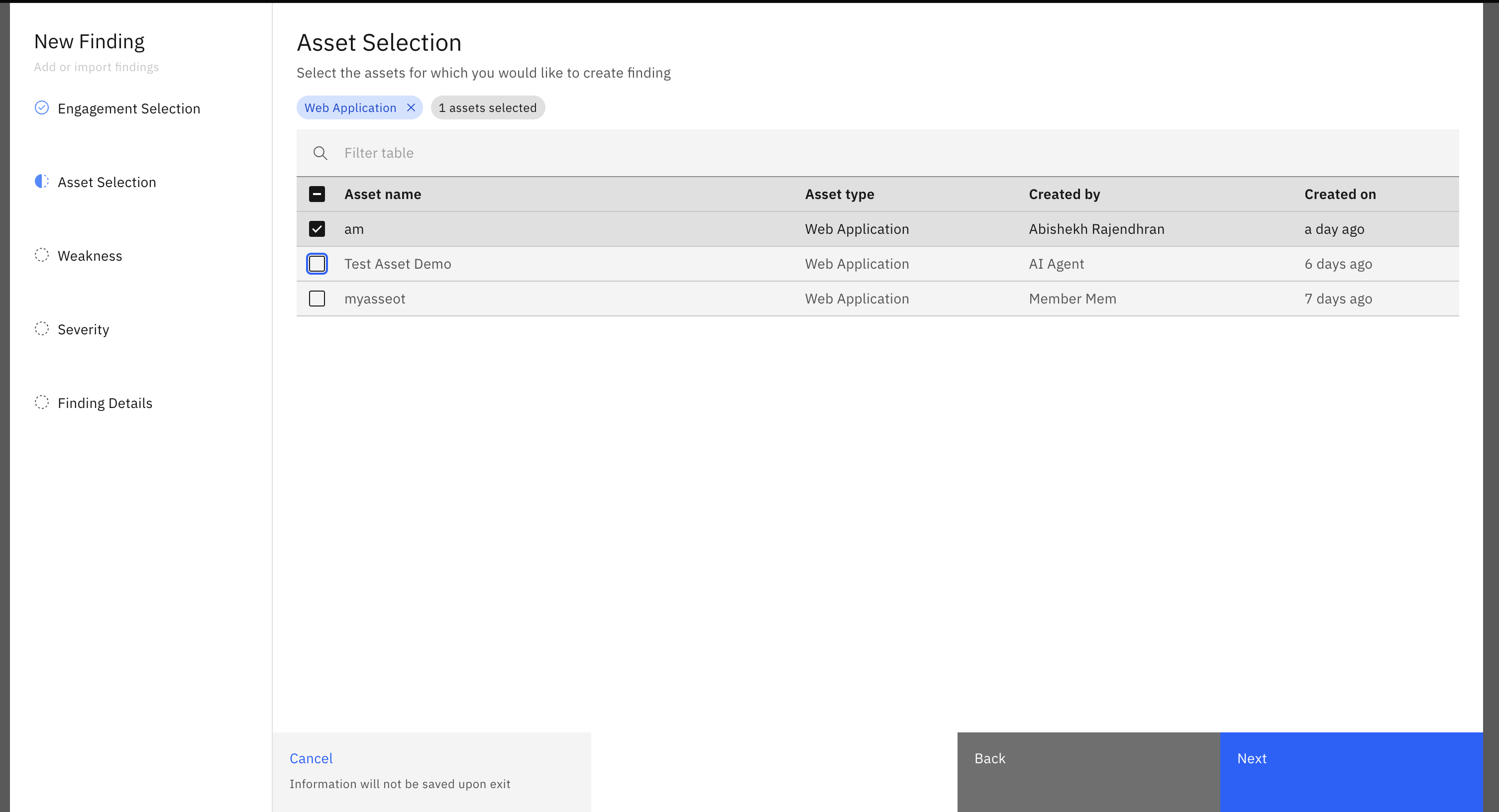 - Select an 'Asset' from the list of your assets. Onboarding an asset is a prerequisite to adding any vulnerabilities. More on how to onboard assets here.