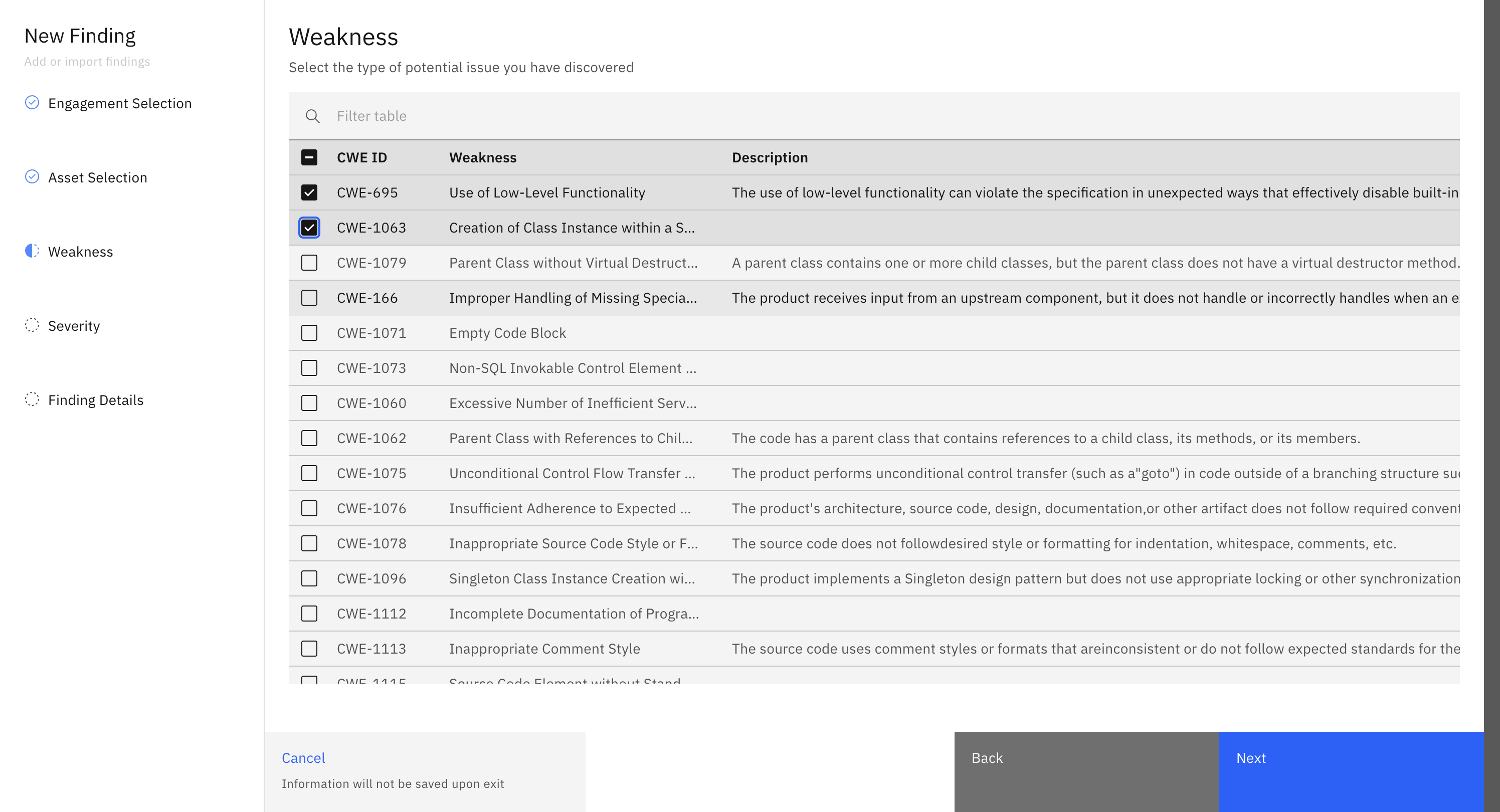 - Now select a 'CWE ID' from the list of CWE ids. This is not mandatory. More about CWEs here.
