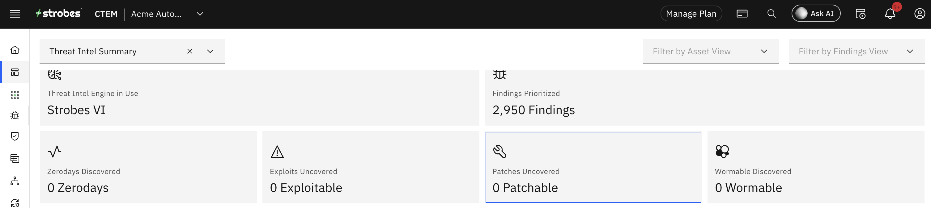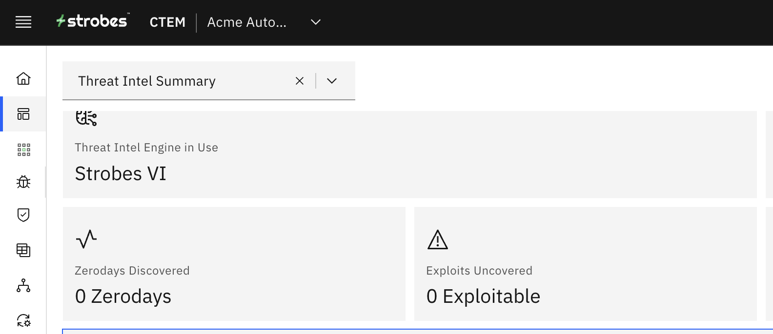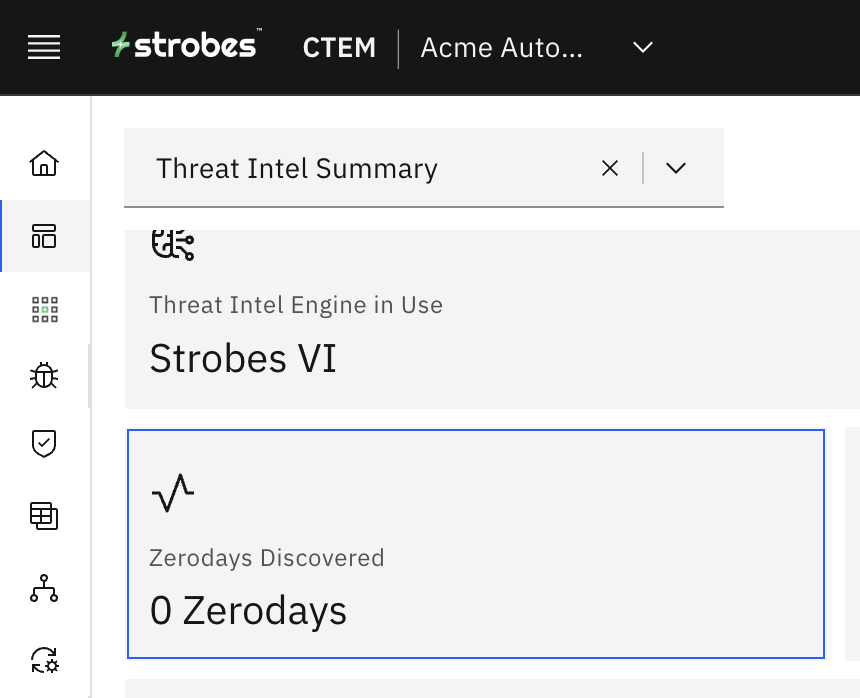 This card shows you the total count of zero-day vulnerabilities in your organization. | This is the total count of common exploits affecting your organization. |