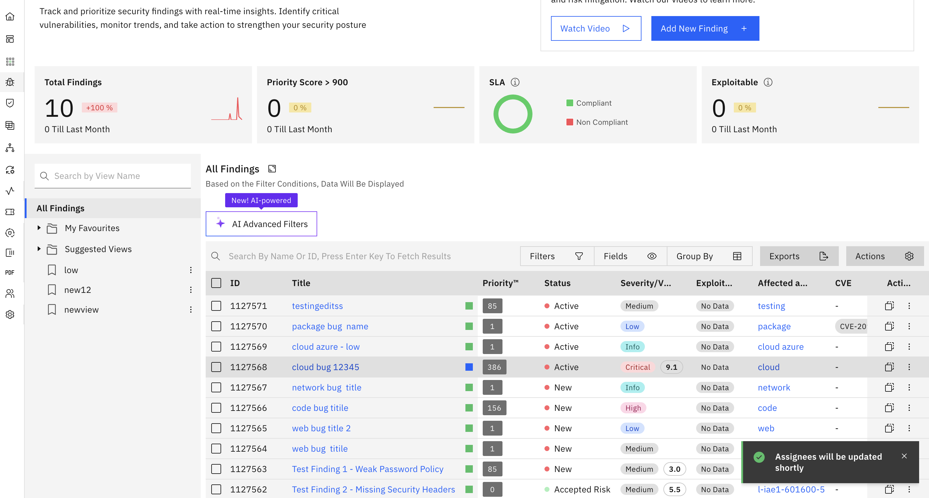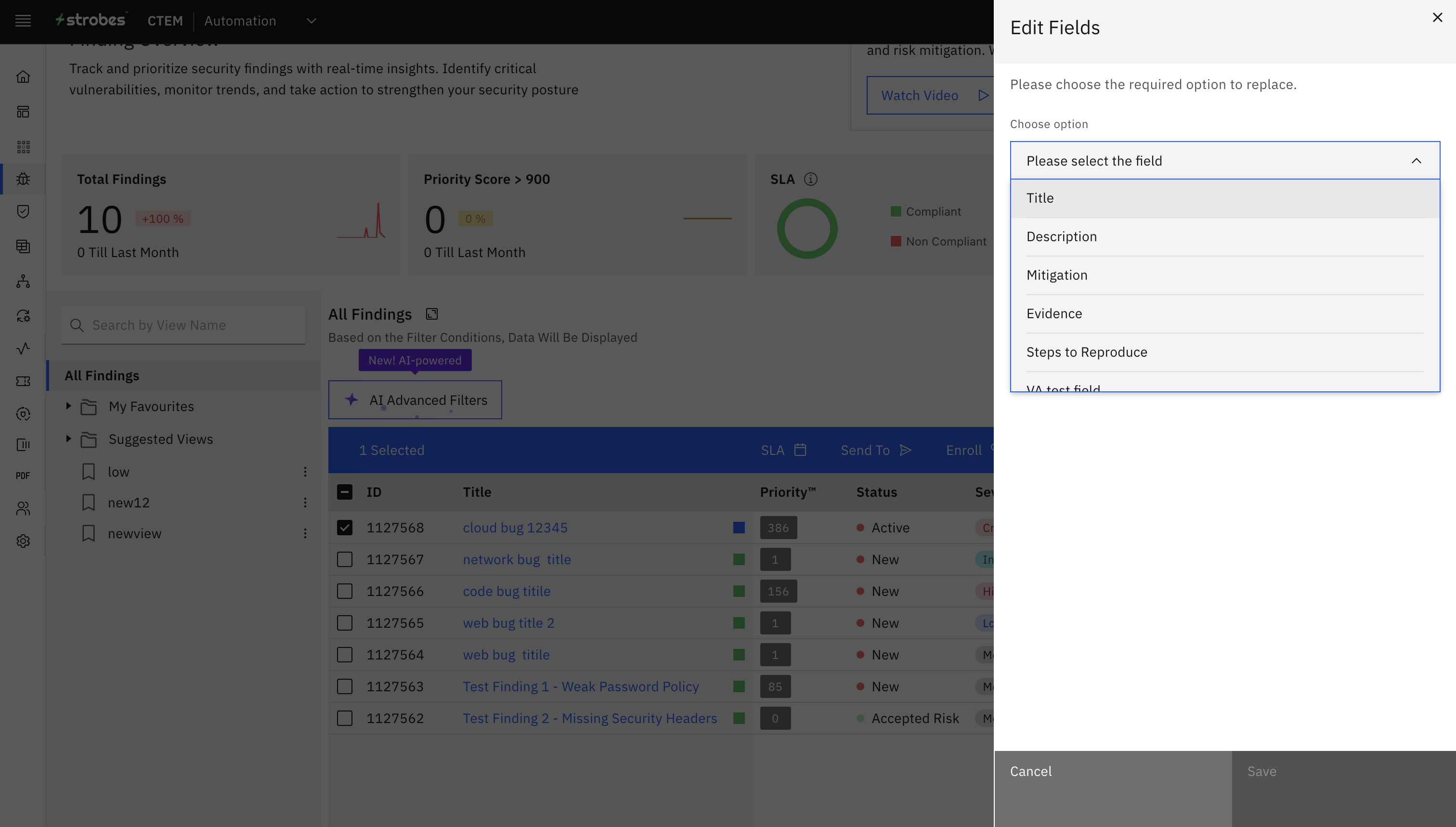 - Select the vulnerabilities for which you need to bulk edit the above mentioned fields.