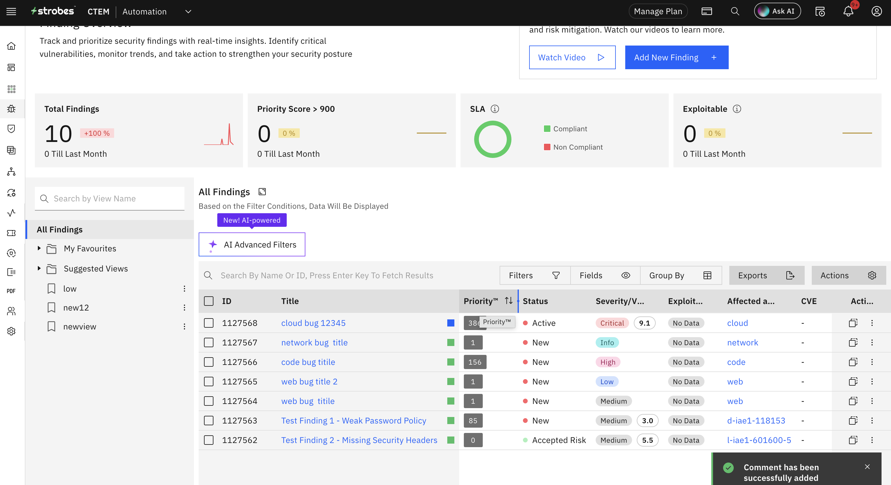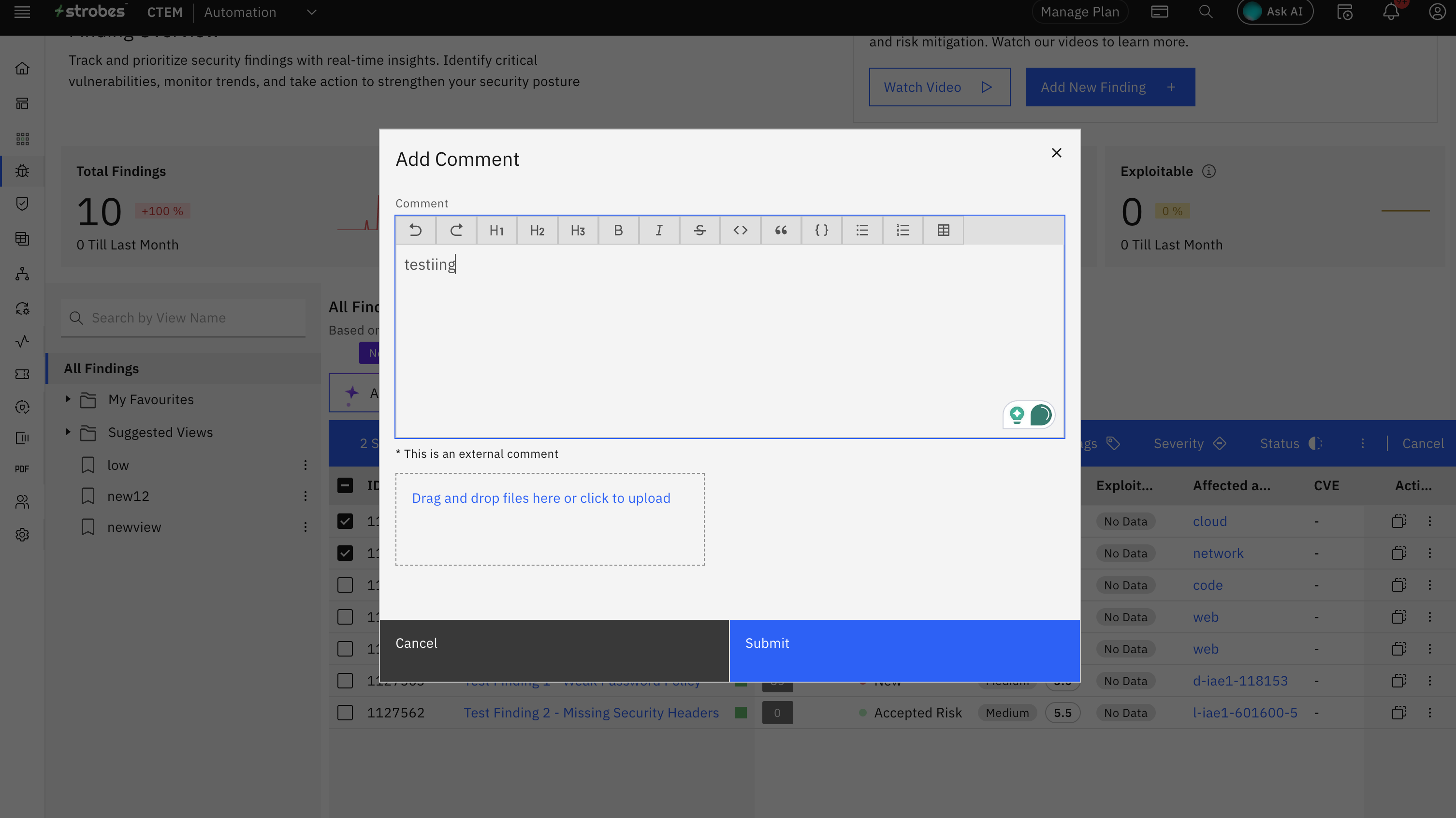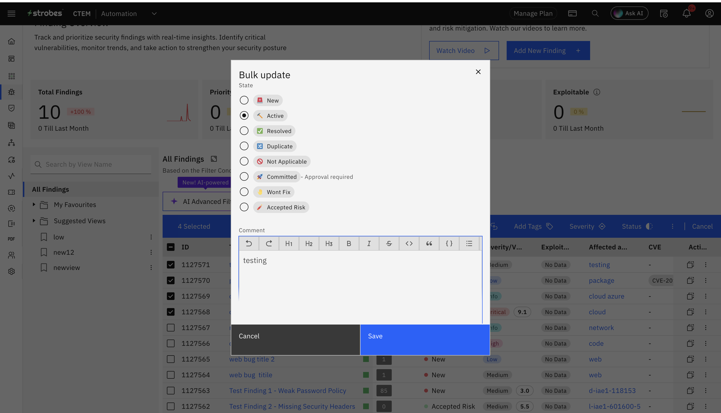 If you need to bulk add comment to multiple vulnerabilities at once, you can use this option.