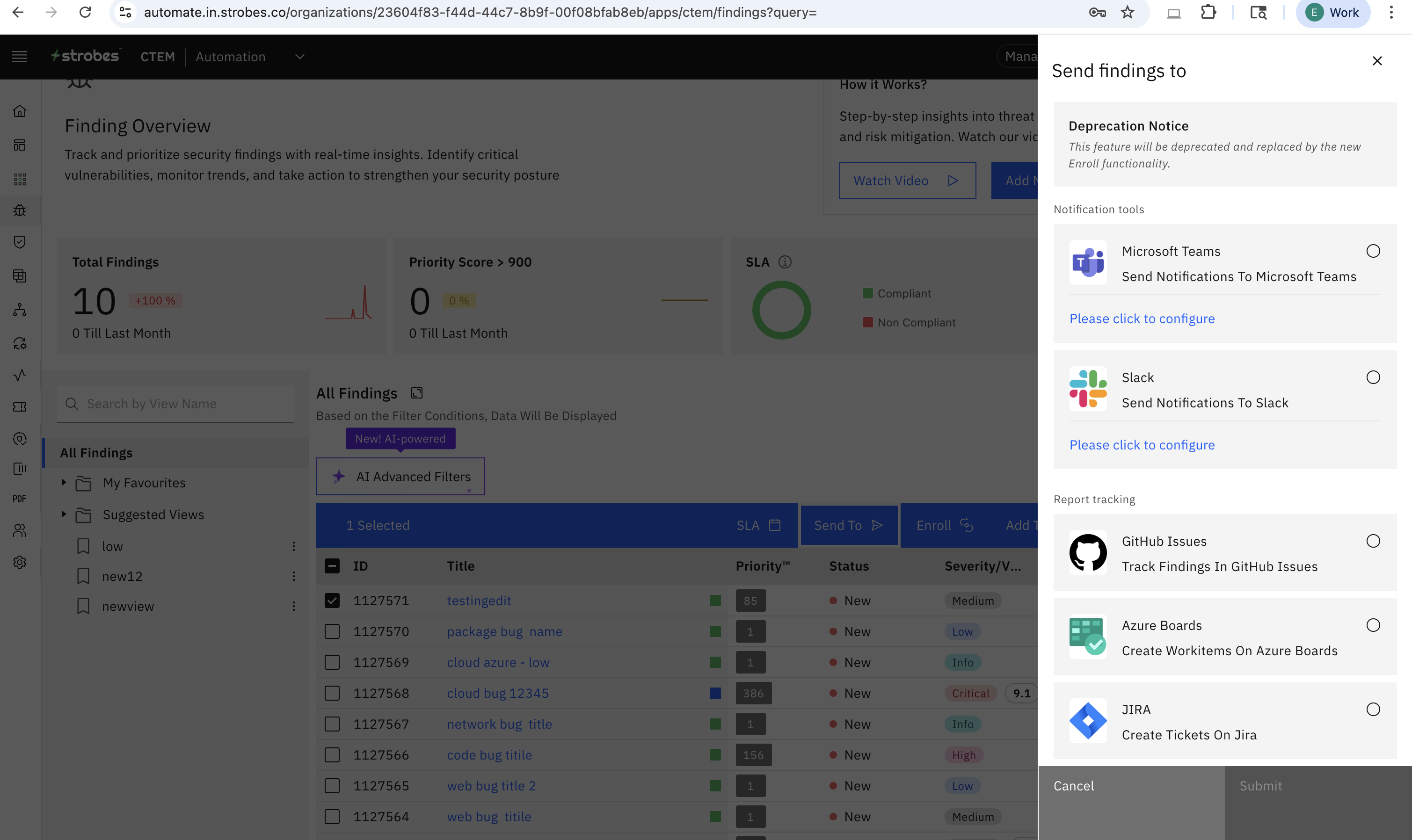 If you need to send details about multiple vulnerabilities to Microsoft Teams or Slack at once, you can use this option. You can also use this option if you need to create Jira tickets for multiple vulnerabilities at once.
