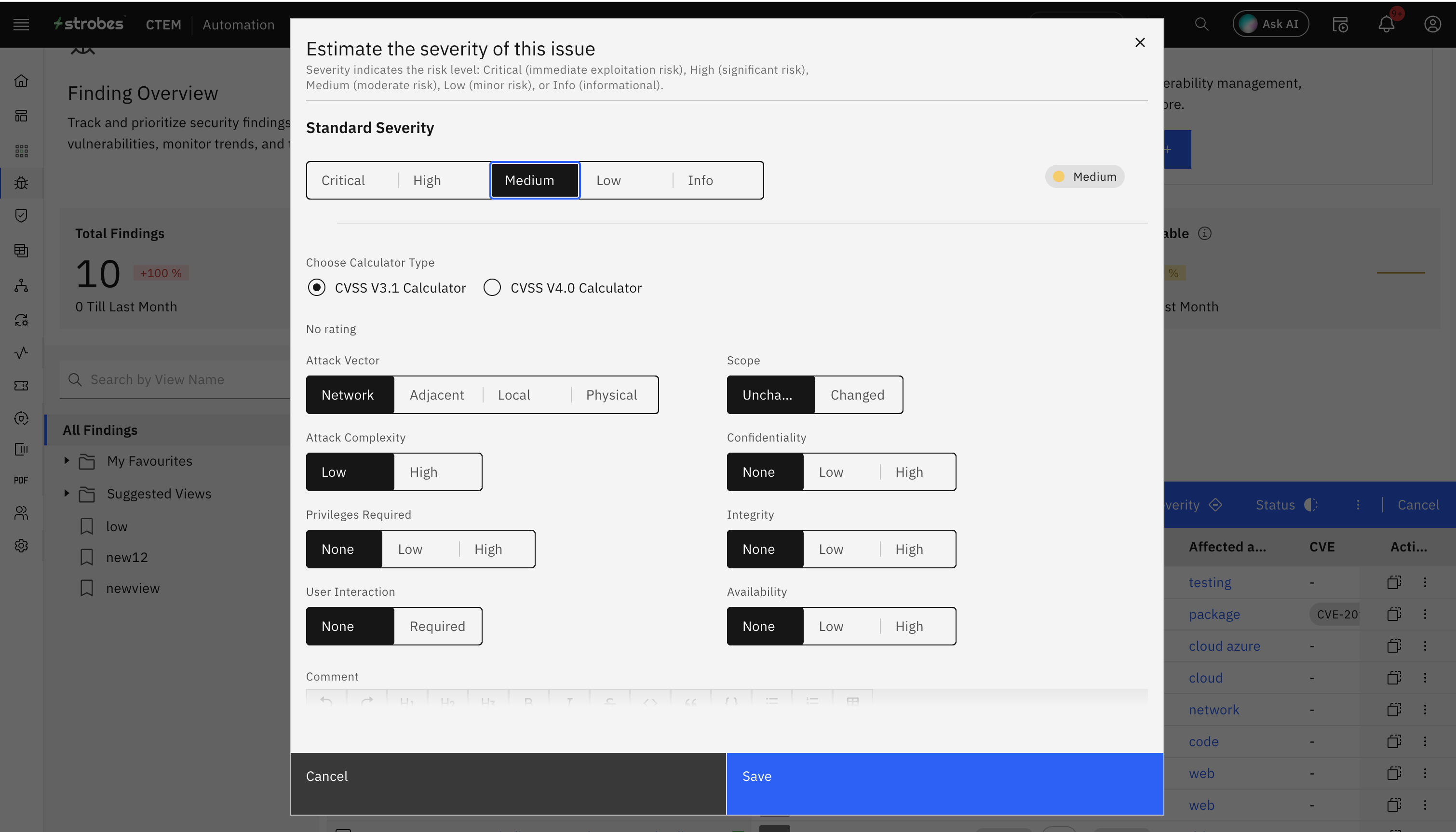 If you need to update the severity of multiple vulnerabilities at once, you can use this option.