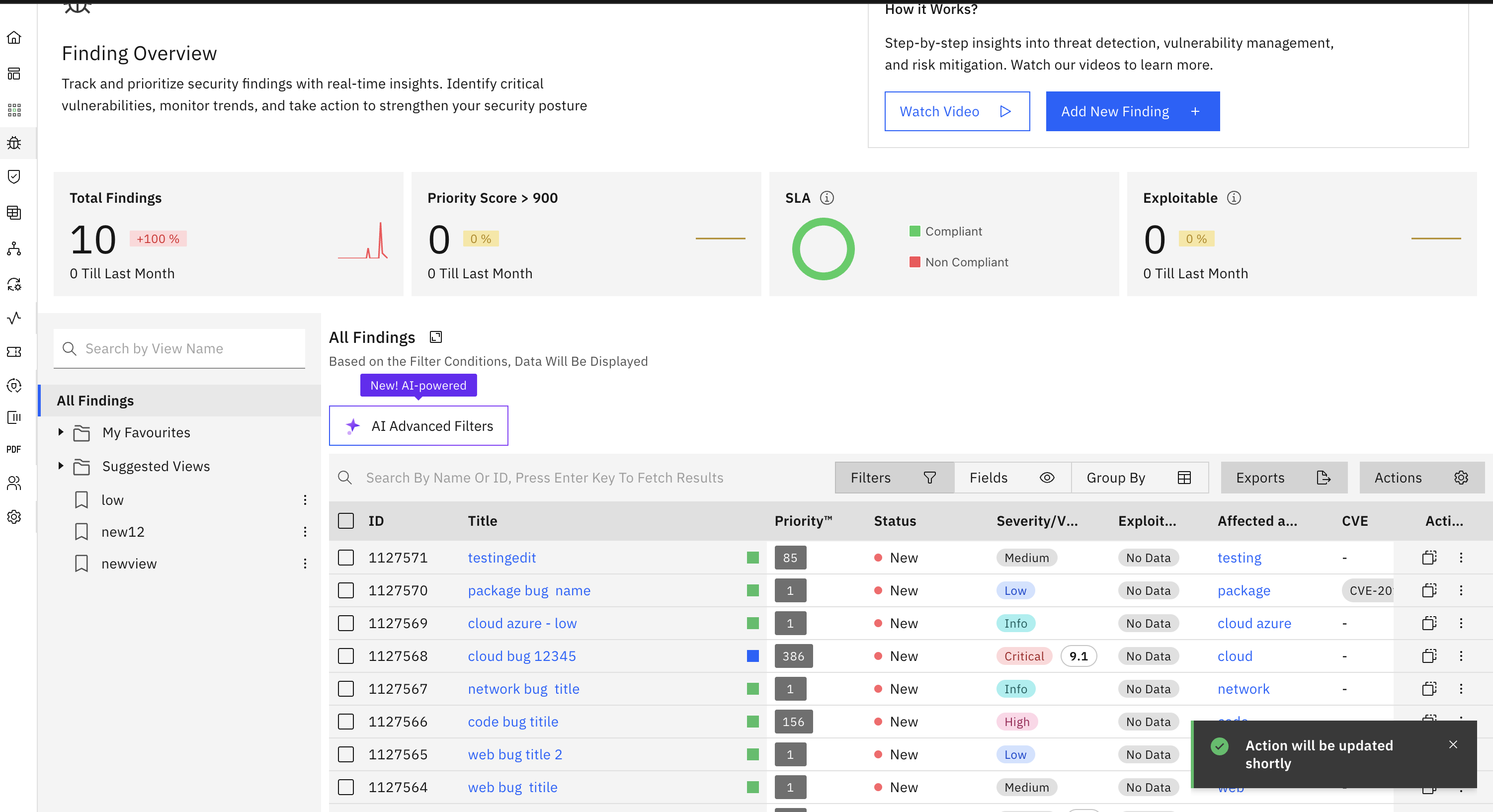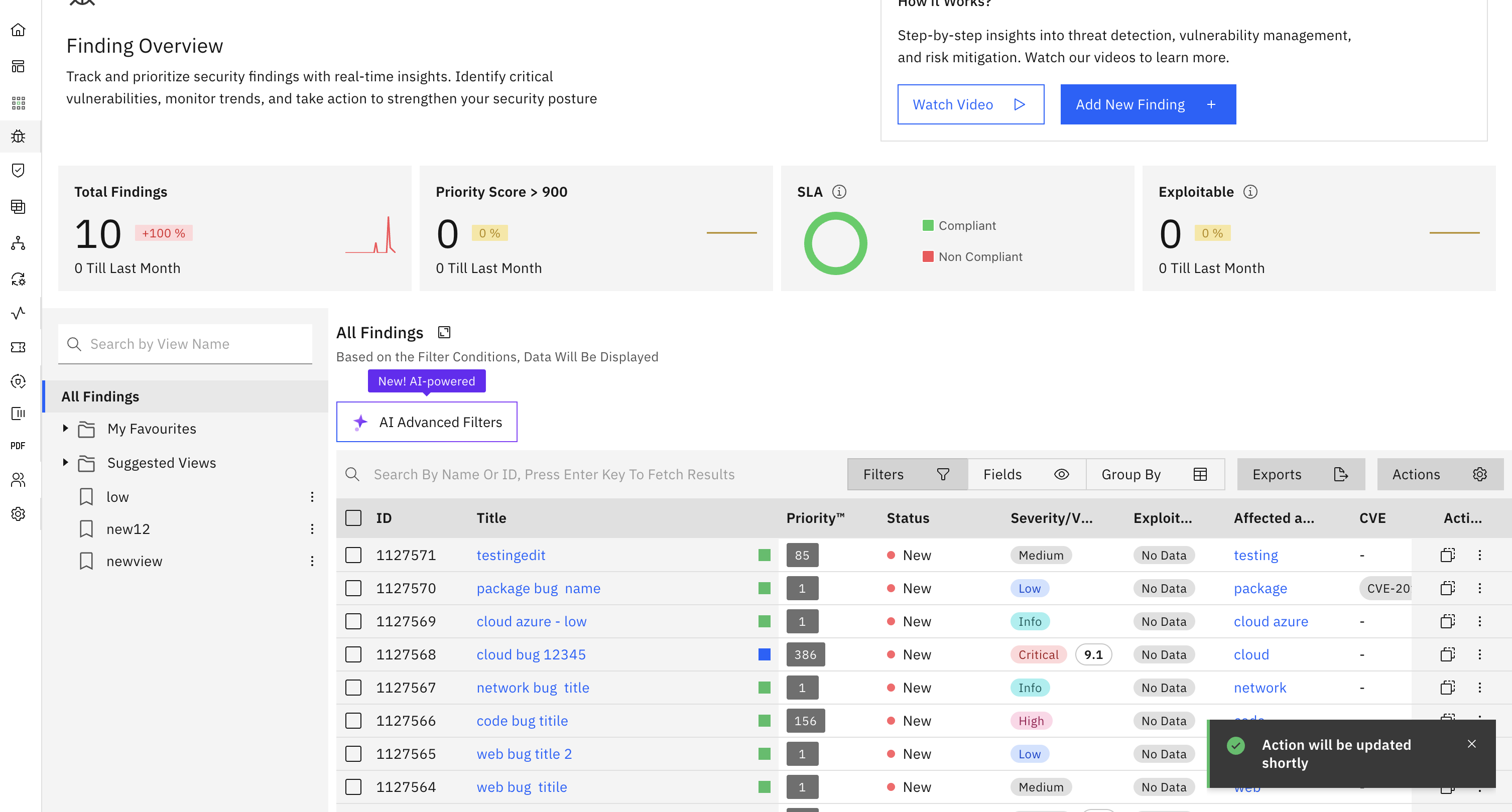 There are certain actions which you can perform in bulk for vulnerabilities instead of updating that data individually for all the vulnerabilities. The following are the bulk actions that you can carry out on vulnerabilities: