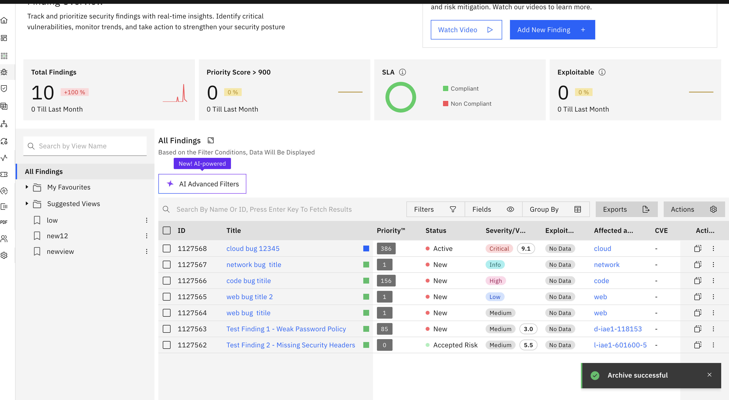 If you need to archive multiple vulnerabilities at once, you can use this option.