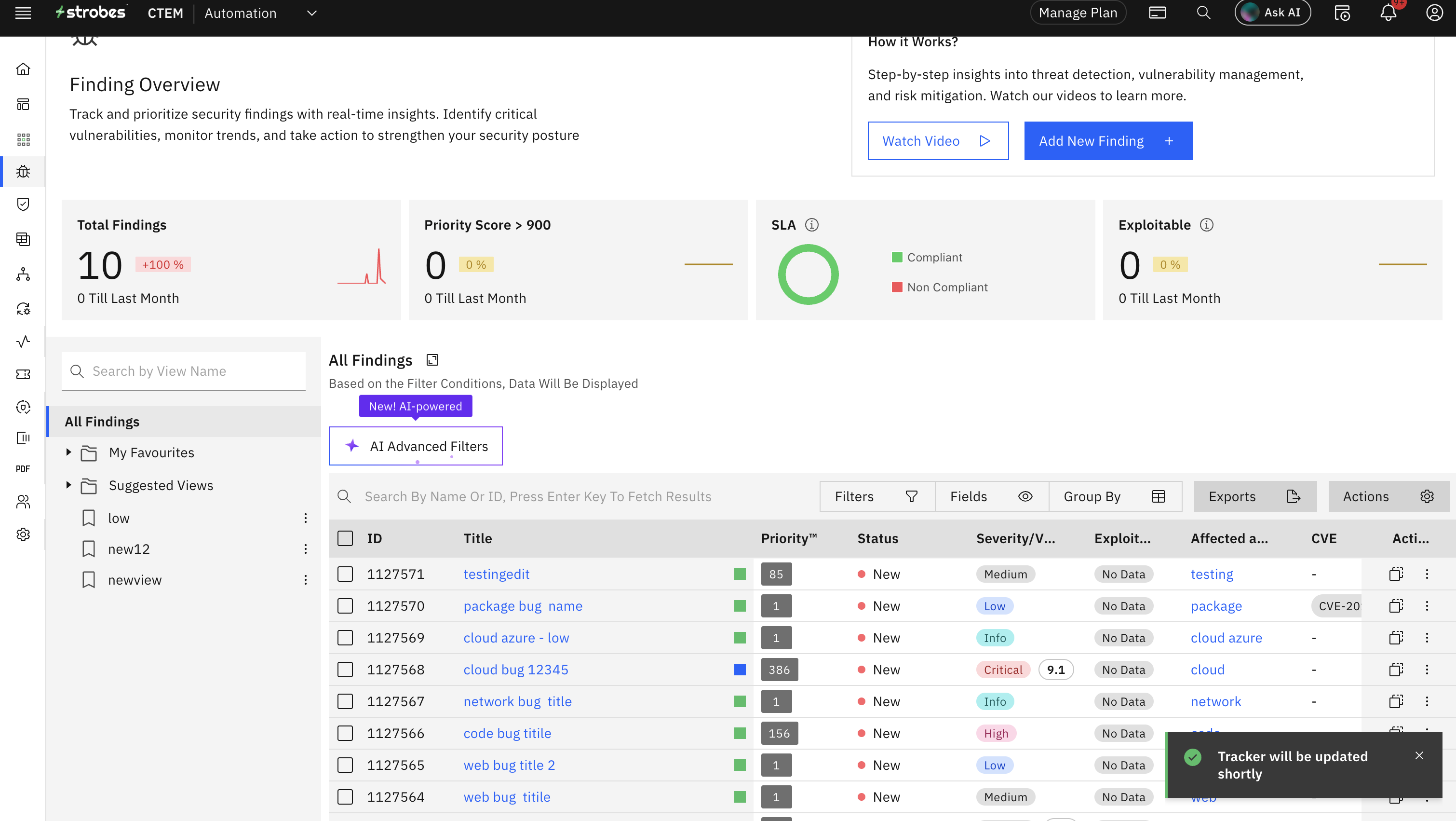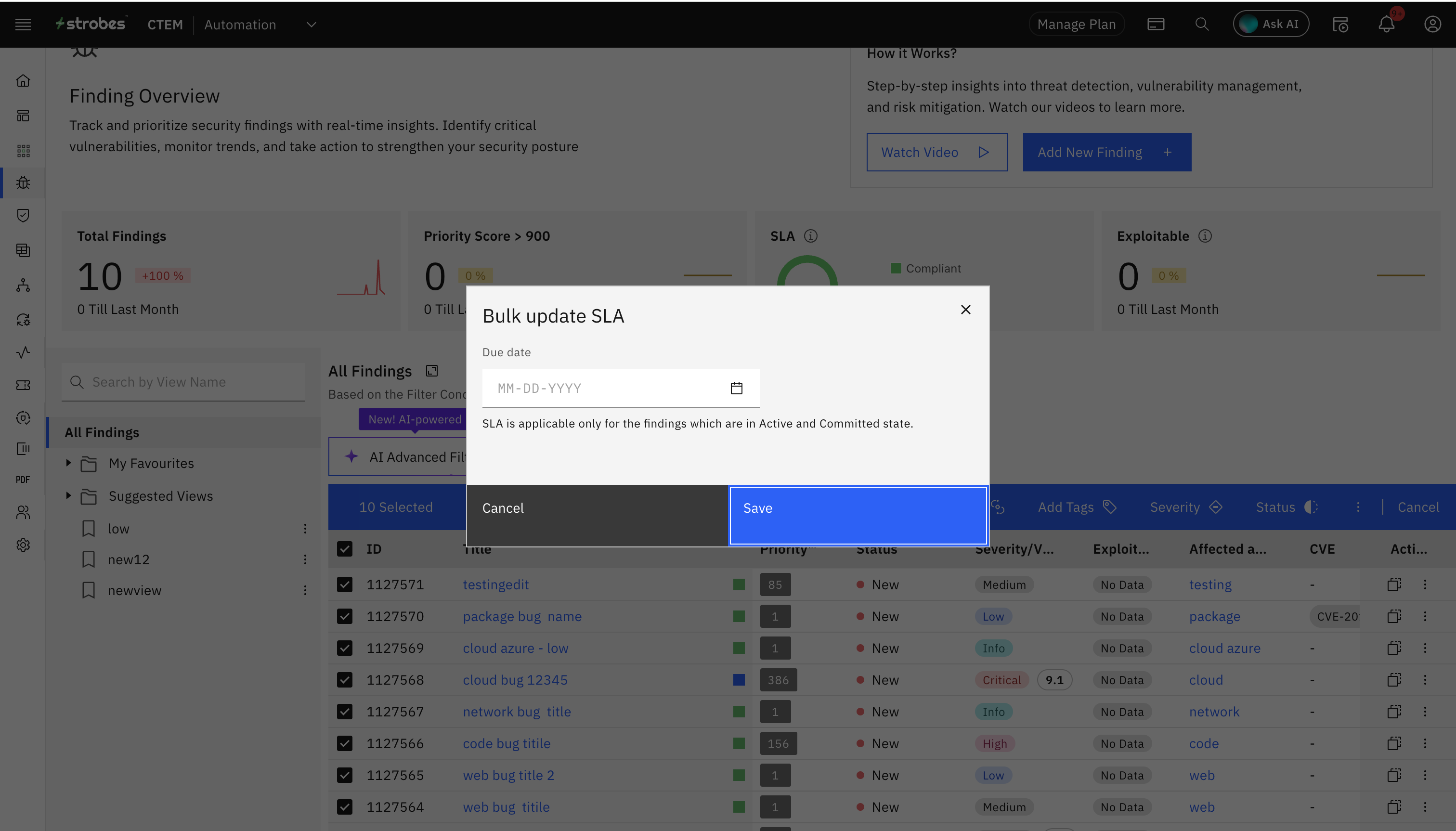If you need to bulk update the SLA for multiple vulnerabilities at once, you can use this option.