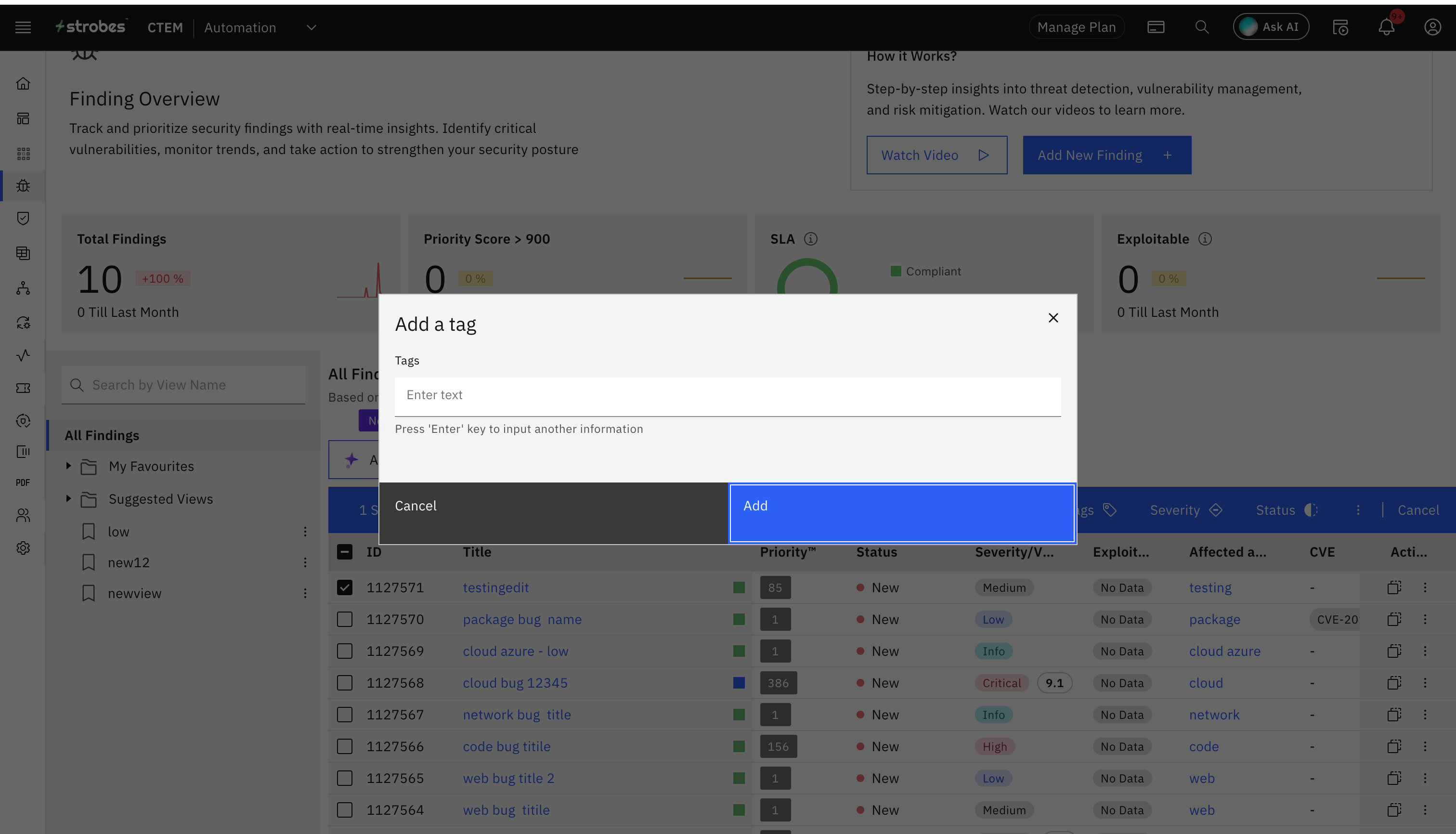 If you need to add a tag to multiple vulnerabilities at once, you can use this option.