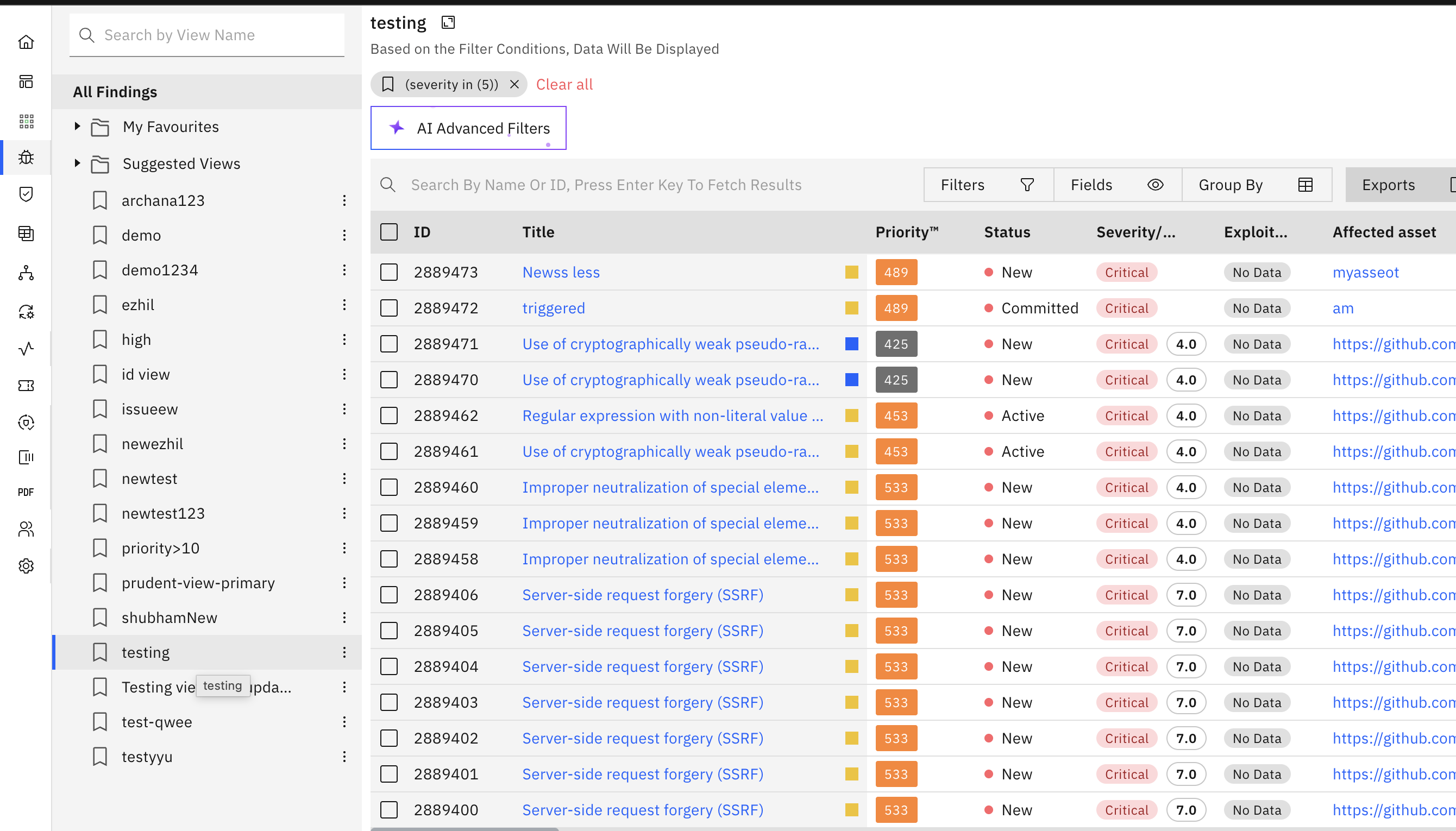 Views in Vulnerability Management allows you to view/export vulnerabilities based on the specific conditions provided by you. Conditions can be provided by using a combination of 'Filters'. A sample set of conditions can be as follows: