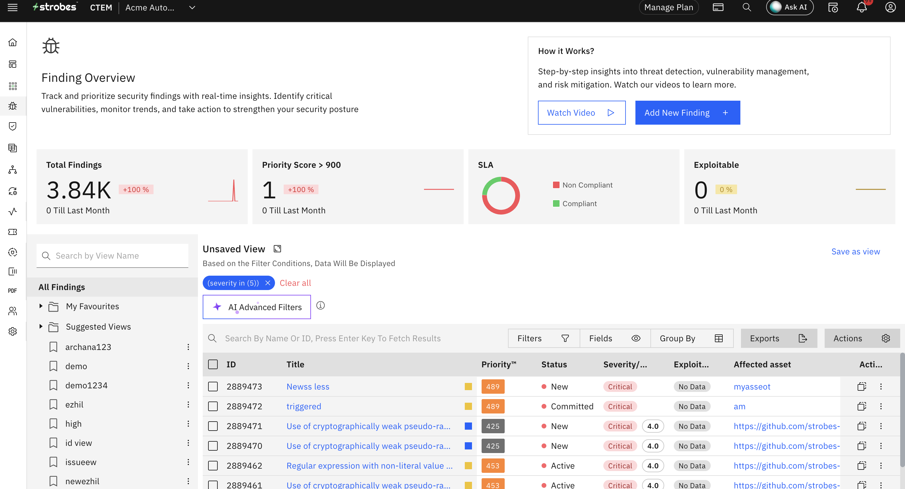 - Exploitable Vulnerabilities : All the vulnerabilities across all your assets which can be exploited will get retrieved.