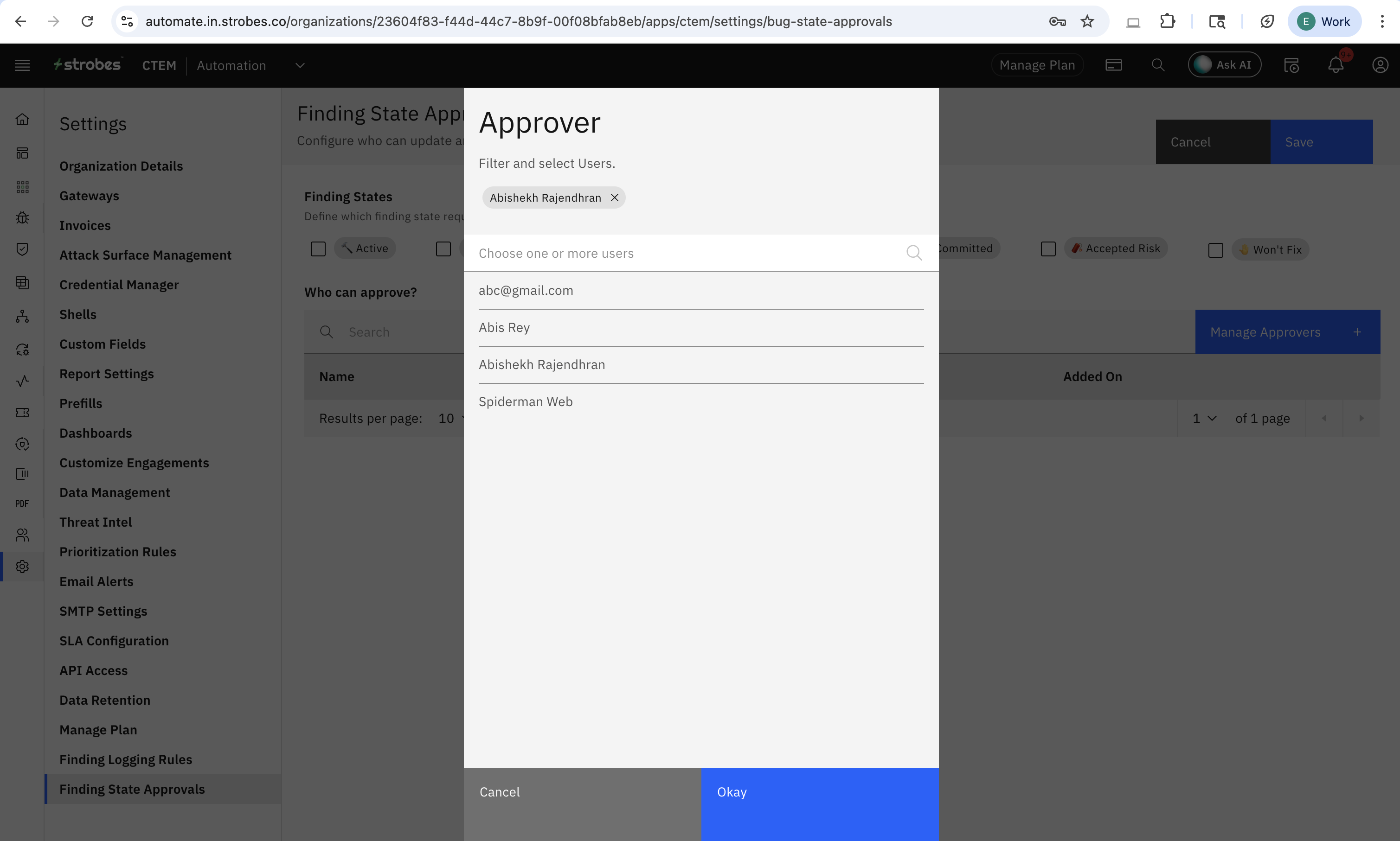 - Click on 'Add' to select the users who can approve the change in vulnerability states.